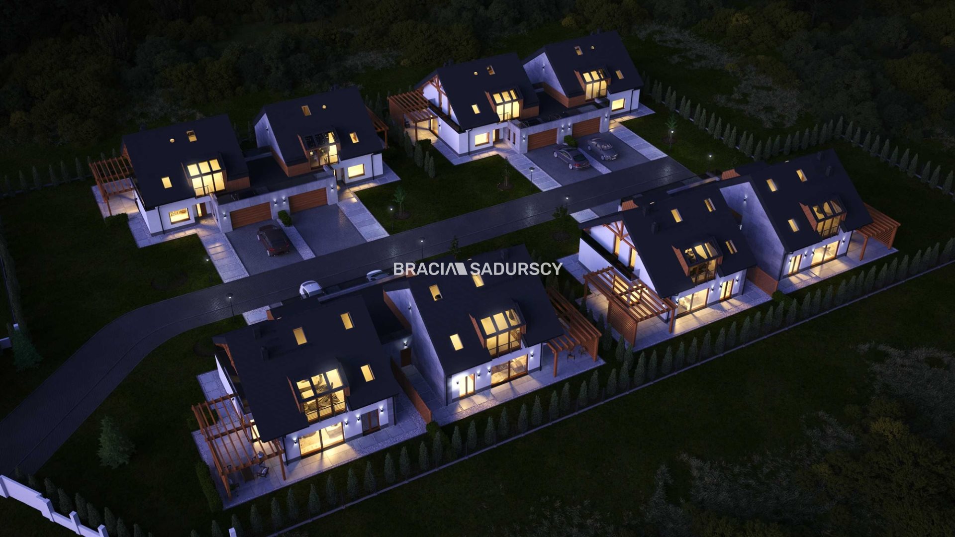 Osiedle jest w pełni ogrodzone, z unikalnym frontowym ogrodzeniem wykonanym na zamówienie z trwałego aluminium. Drogi wewnętrzne oraz miejsca parkingowe wyłożone są kostką brukową z systemem odwodnieniowym, zapewniając komfortowy dojazd do posesji. Wspólna infrastruktura, obejmująca ogrodzenie, wjazd oraz drogę wewnętrzną, została zaprojektowana z myślą o funkcjonalności i estetyce.
