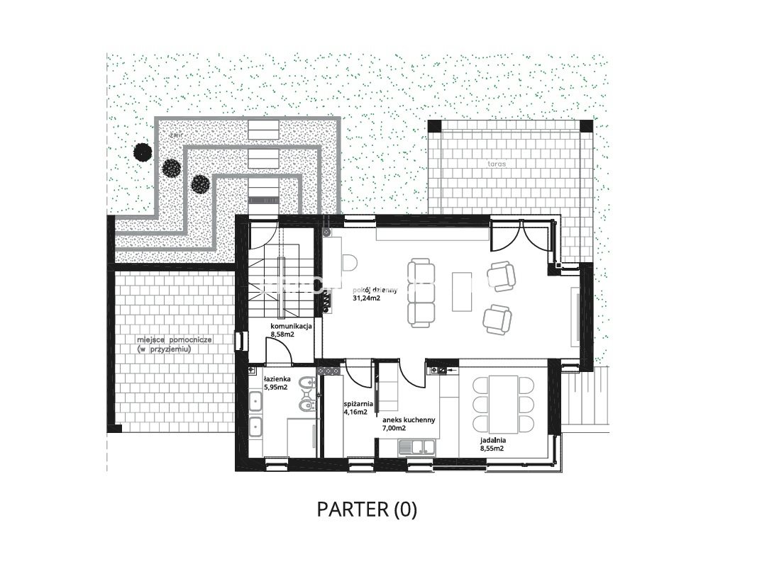 Nowoczesna architektura łączy prostą, elegancką formę z funkcjonalnością. Duże przeszklenia zapewniają świetne doświetlenie wnętrz, a ogrody i tarasy pozwalają cieszyć się prywatną strefą relaksu.