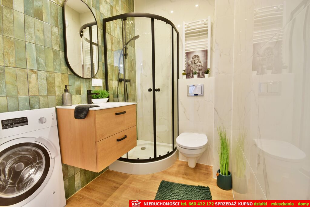 - łazienka: glazura, natrysk, umywalka z szafką;