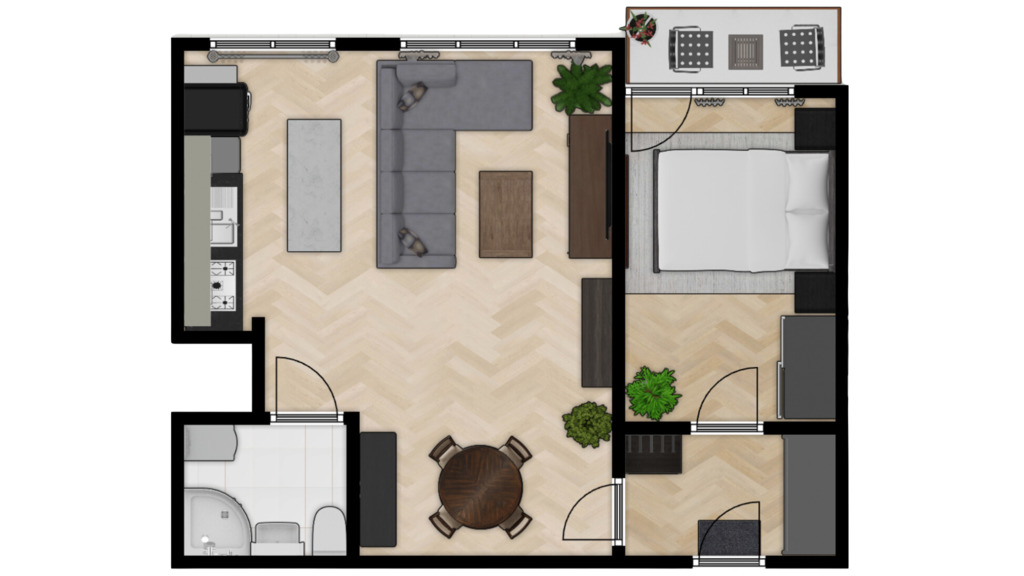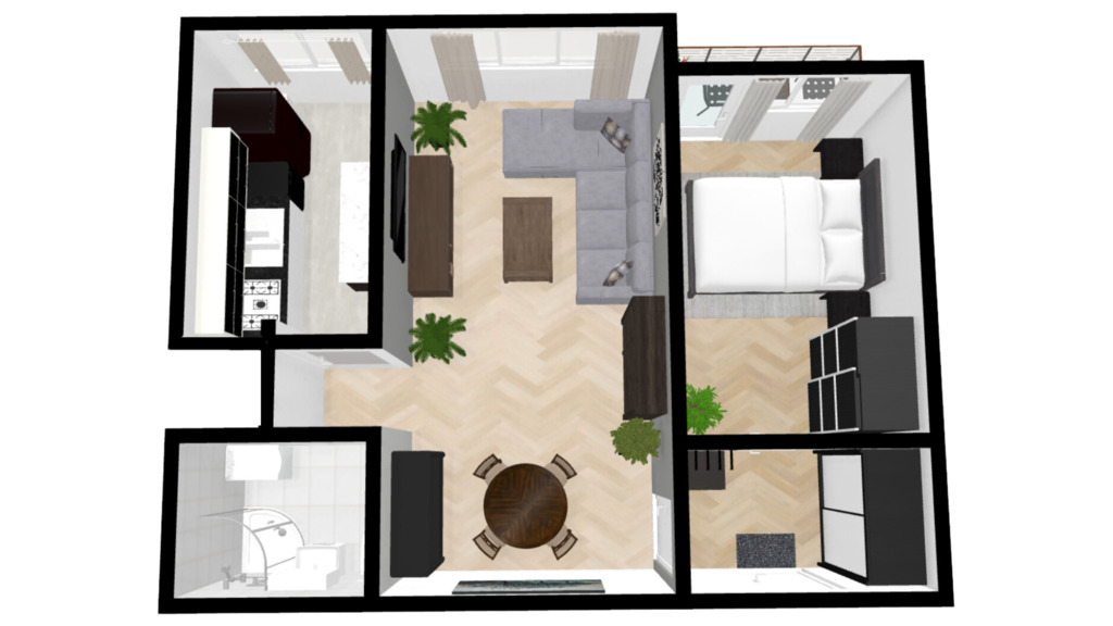 - kuchnia oddzielna z możliwością przerobienia na aneks z salonem