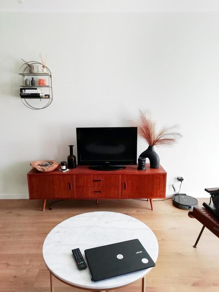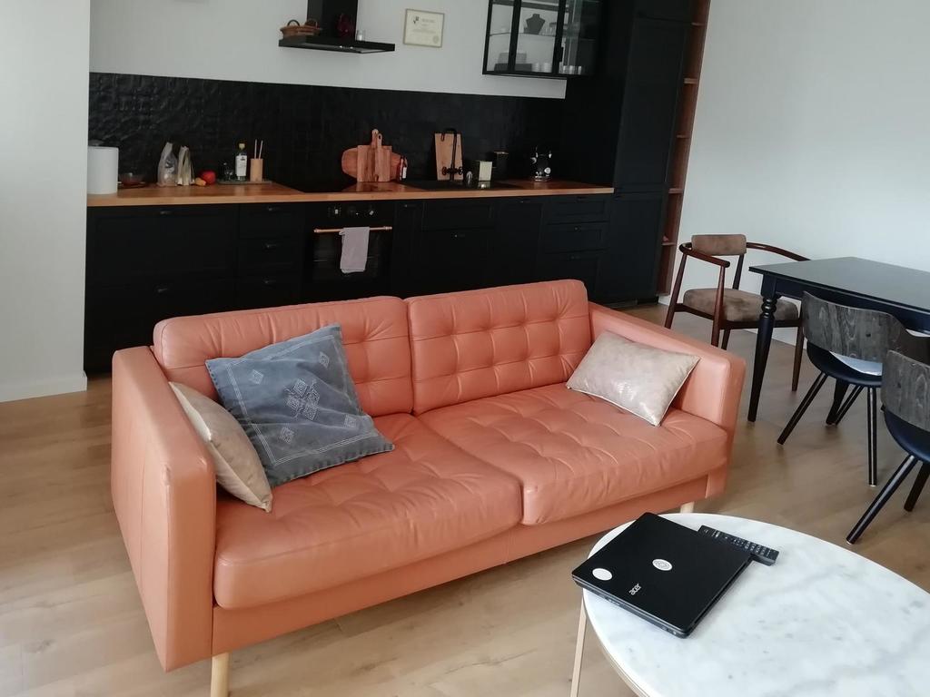 - z meblami, m.in. skórzana sofa, tv z szafką rtv, stół + 4 krzesła;