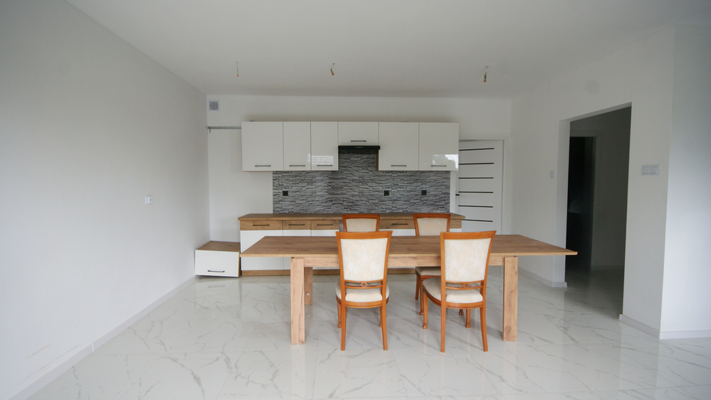 - na poziomie zero częściowo ułożone płytki podłogowe oraz rozpoczęto wykonanie zabudowy meblowej kuchennej