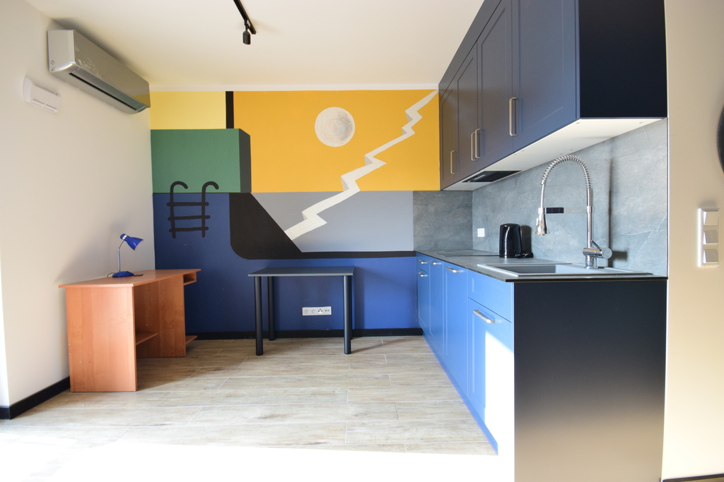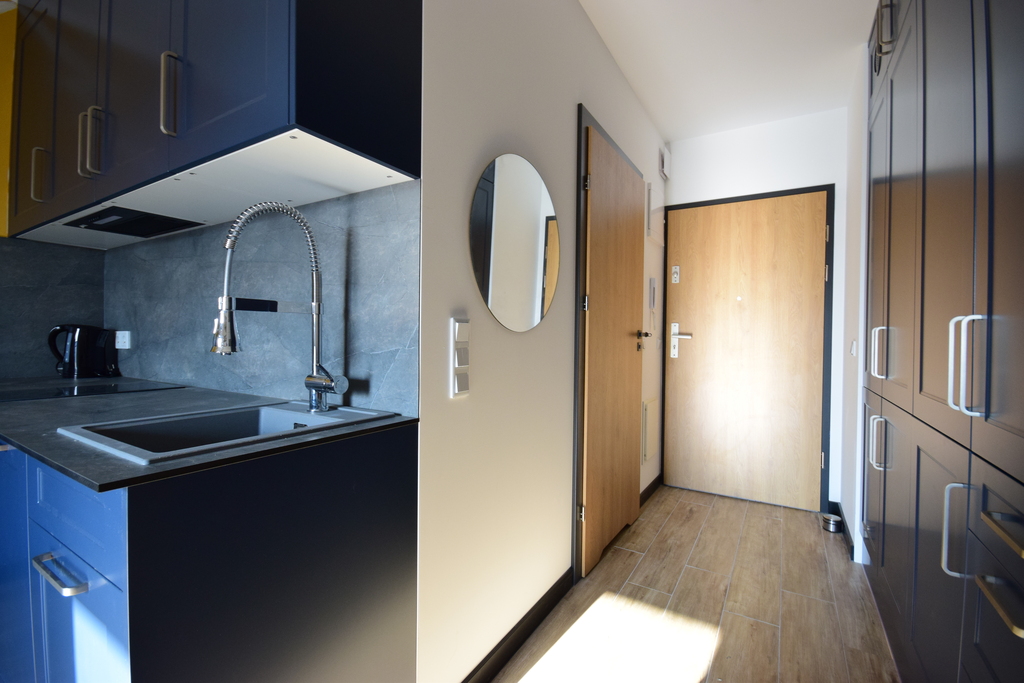 - kompleksowo wyposażone studio z aneksem kuchennym i łazienką z wc.