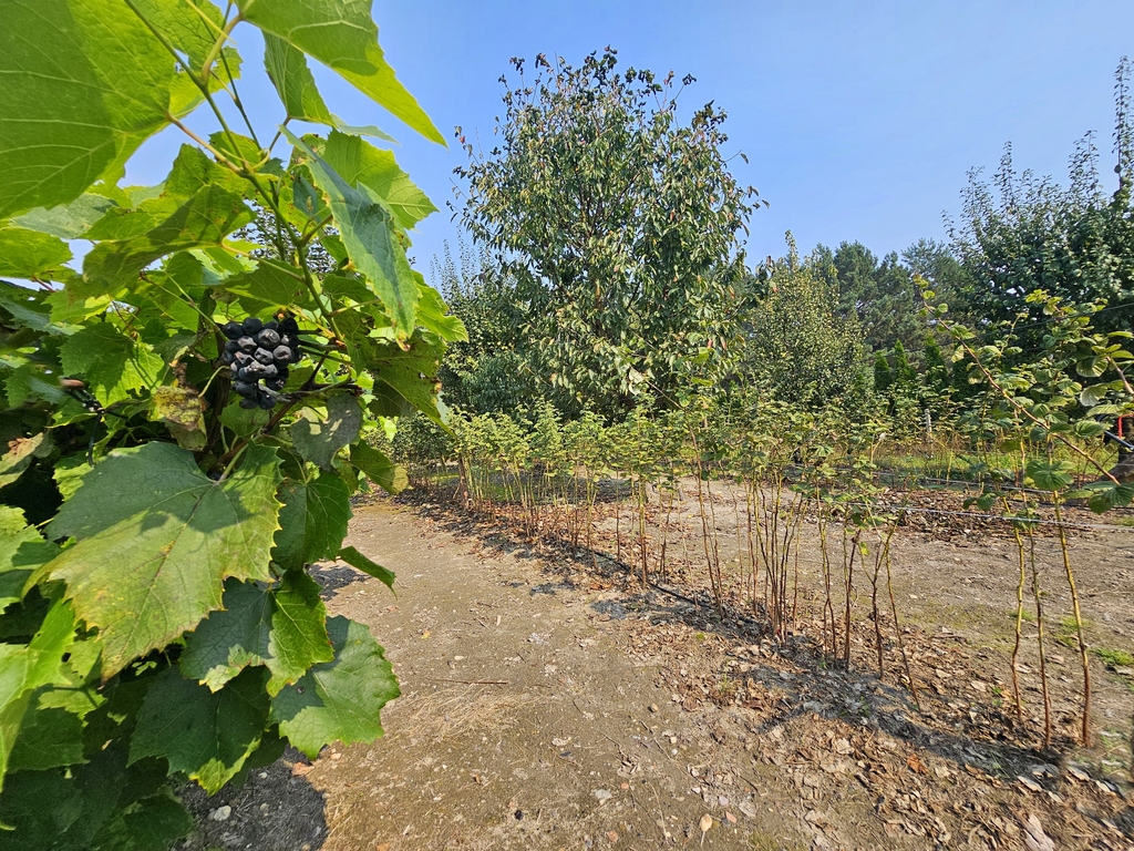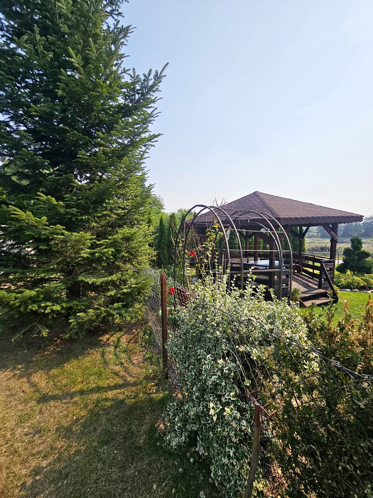 - ogród urządzony, zadbany, z nasadzeniami, w tym drzewami i krzewami owocowymi w dużej ilości