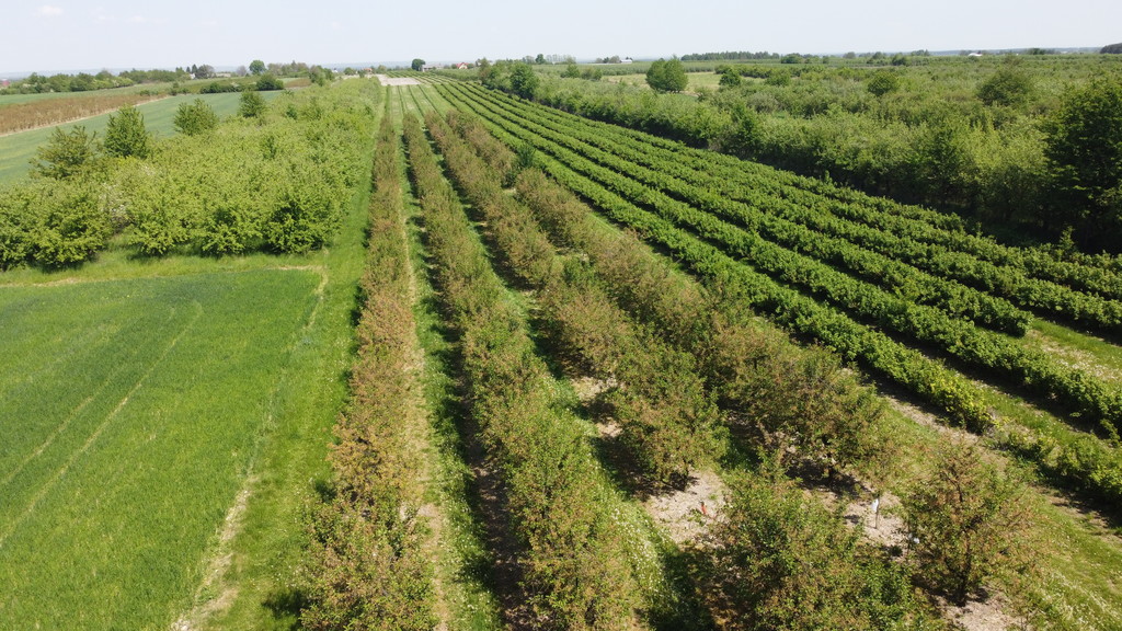 -obecnie cała działka stanowi sad wiśniowy. Drzewa w pełni owocowania gęsto oblepione owocami.