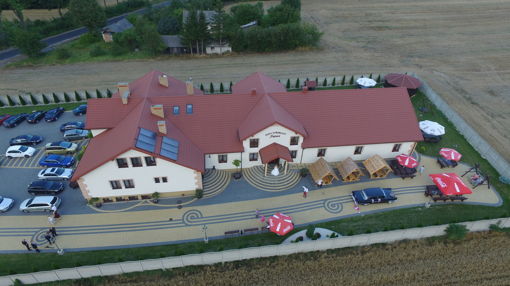Dom weselno-bankietowy o pow. 1500m2, przystosowana do organizacji dużych imprez (do 450 osób) wraz z zapleczem gastronomicznym i hotelem.