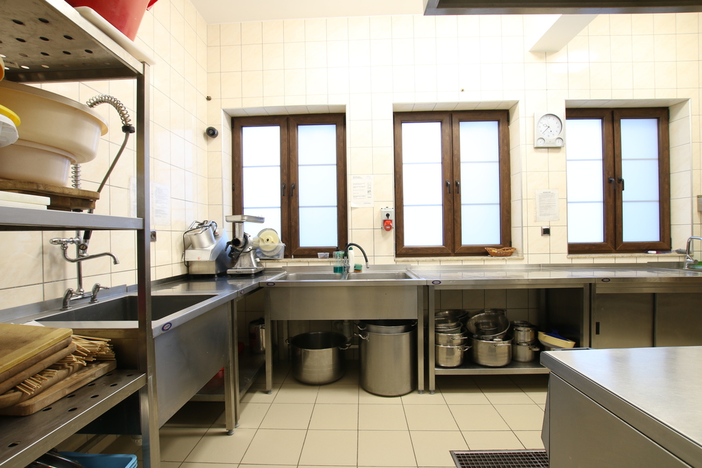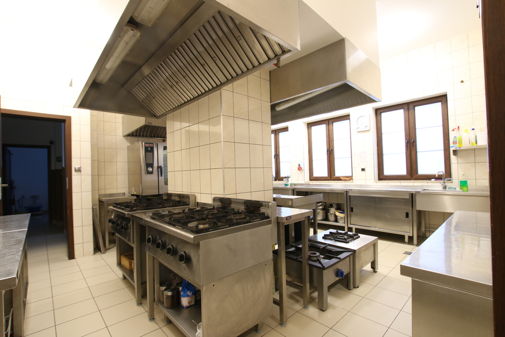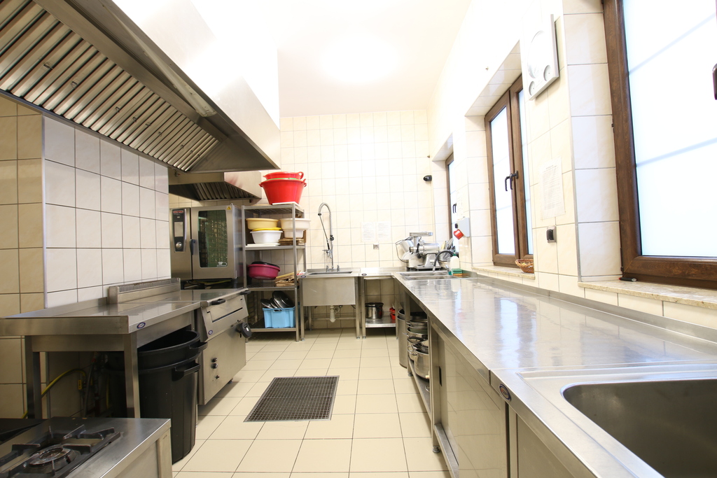 -kuchnia oraz dodatkowe pomieszczenia techniczne (2 chłodnie, 2 mroźnie, magazynki, łazienka, wc, pom, gospodarcze) o łącznej powierzchni 90m2