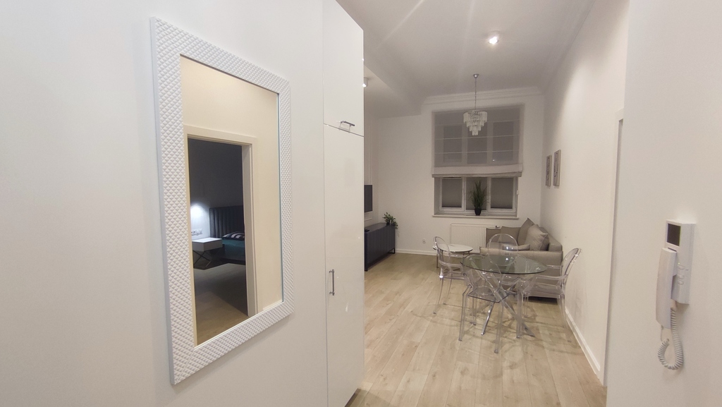 Mieszkanie jest nowoczesne, komfortowe i w pełni wyposażone. Znajduje się w ścisłym centrum miasta nieopodal Krakowskiego Przedmieścia, Placu Litewskiego, Starego Miasta i Ogrodu Saskiego.