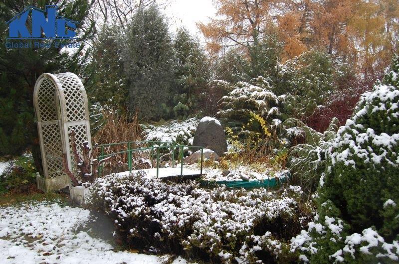 Budynek usytuowany jest na działce o powierzchni 28 arów.Znajdują sie tam liczne nasadzenia, basen letni, duże oczko wodne. Wielkość działki pozwala na budowę kolejnego budynku.