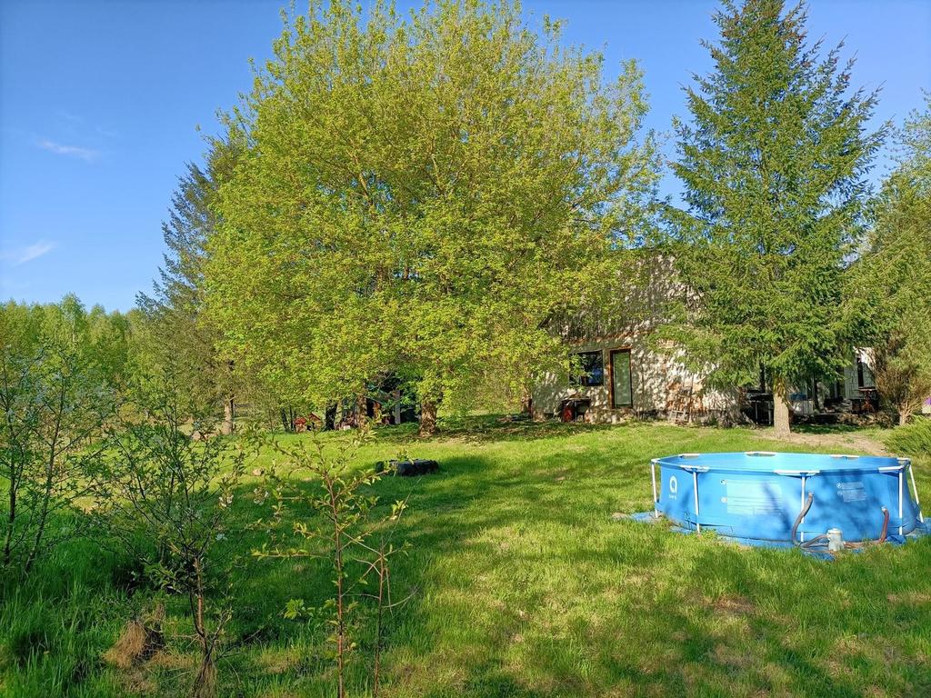 -piękna działka 1,4 ha z dwoma stawami, porośnięta drzewami i roślinami na której znajdują się dwa budynki. Pierwszy główny mieszkalny oraz drugi z możliwością dowolnej adaptacji. Może być przystosowany do całorocznego zamieszkania (doprowadzone ogrzewanie z głównego budynku) jak również sezonowe wykorzystanie jako domek letniskowy lub komercyjne pod wynajem.