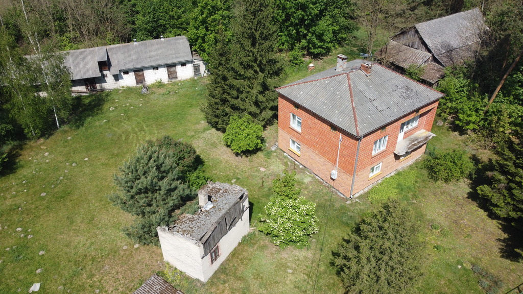 - budynek składa się z parteru (wejście z poziomu "0") składającego się z korytarza, dużej kuchni 17 m 2, pokoju 17 m 2, łazienki 3,5 m 2, kotłowni i spiżarni łącznie 11,5 m 2, oraz piętra składającego się z trzech pokoi 18 m 2, 17 m 2, 15 m 2, łazienki 4 m 2, korytarza, klatki schodowej na strych. Więźba dachowa w dobrym stanie technicznym. Pomieszczenia widne, z pokoju wyjście na balkon.