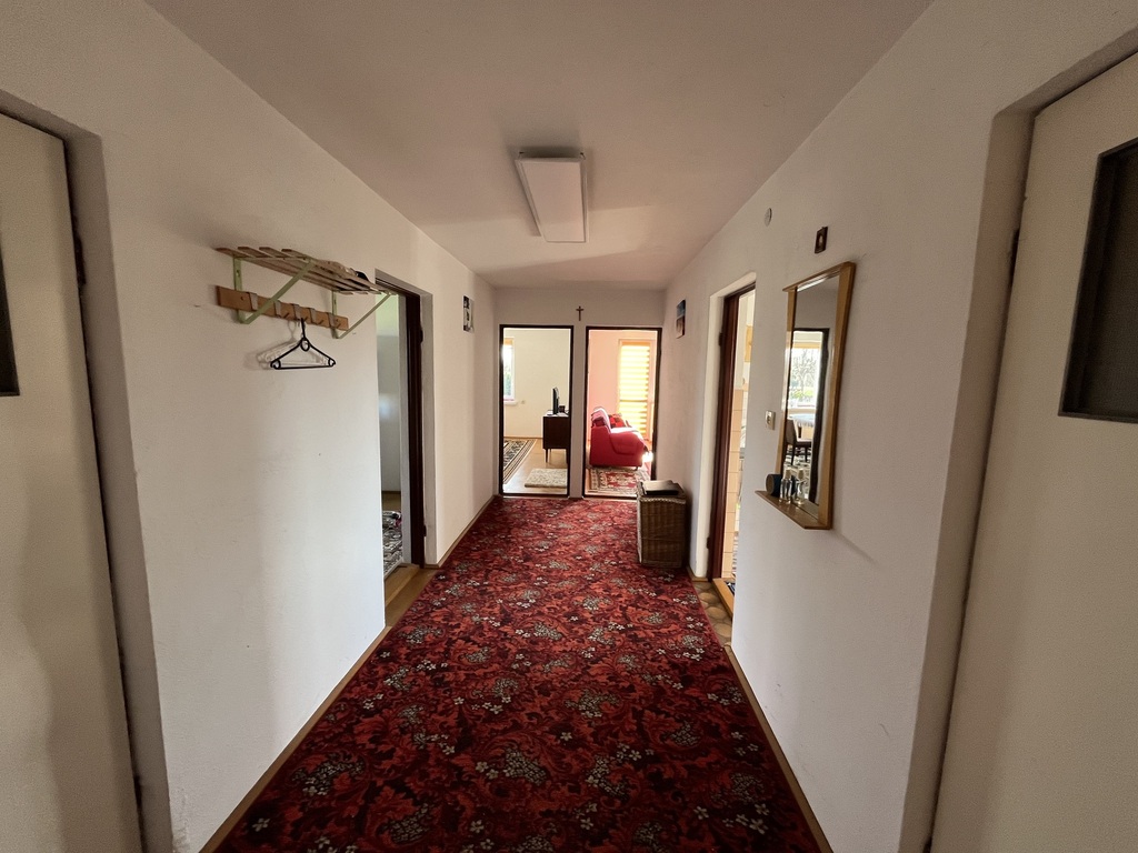 -dom piętrowy z zamieszkałą częścią w suterenie. Suterena i piętro oddzielone z osobnymi wejściami. Na poziomie "0" w suterenach znajdują się pomieszczenia w postaci korytarza, kuchni, dwóch pokoi, spiżarni i kotłowni. Pomieszczenia w sumie o powierzchni 93,5 m2 w pełni przystosowane do zamieszkania.