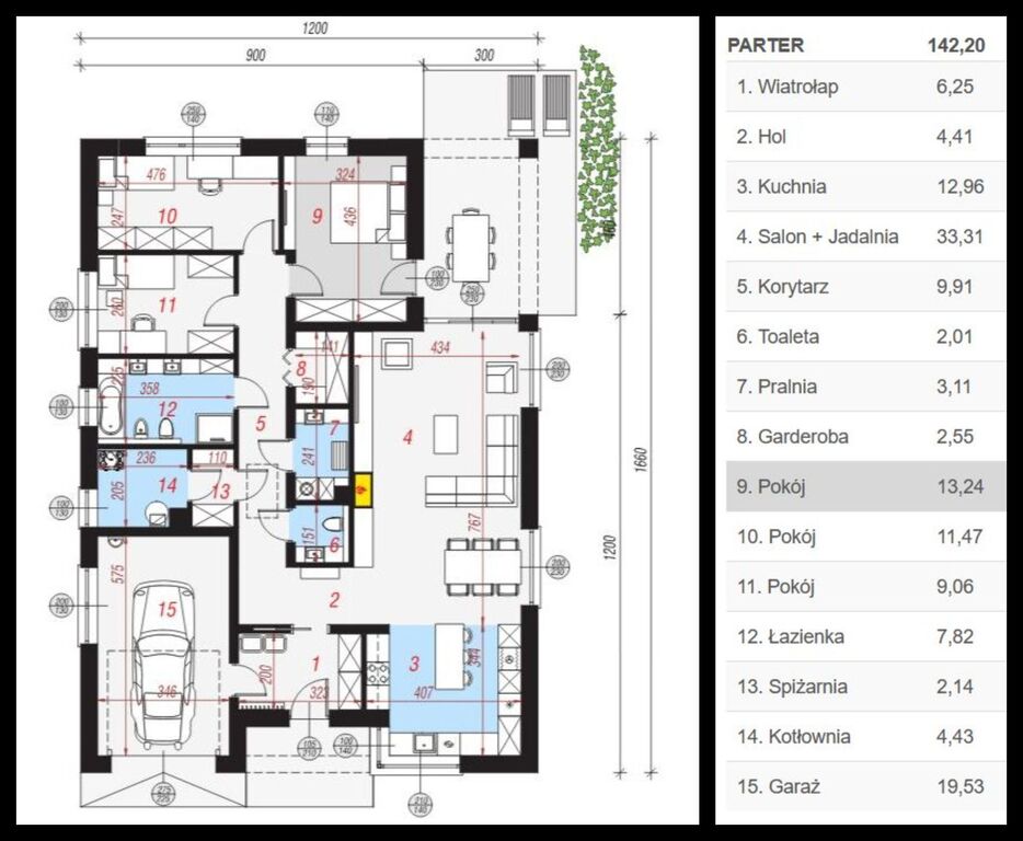 - Liczba pięter: parterowy (z możliwością wykorzystania poddasza jako użytkowe);