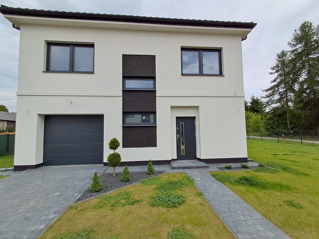 Nowoczesny dom wykończony materiałami z górnej półki. Położony z dala od zgiełku miejskiego. Doskonały dla osób ceniących sobie ciszę i spokój oraz bliskość miejskiej infrastruktury.