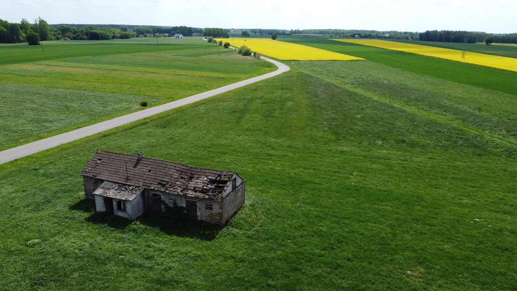 - na działce o największej powierzchni znajduje się budynek mieszkalny do generalnego remontu lub rozbiórki. Budynek o wymiarach 15 m i 4,5 m wykonany w pustaka. Działka ta oznaczona symbolem Br (rolna zabudowana). Pozostałe działki o przeznaczeniu rolnym z bonitacją IV Klasy ziemi.