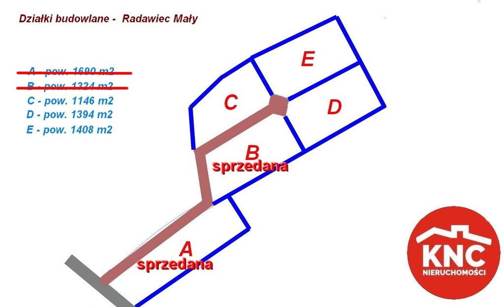 SPRZEDANA -działka B - pow. 1324 m² wymiary ok. szer. 25 x dł. 52