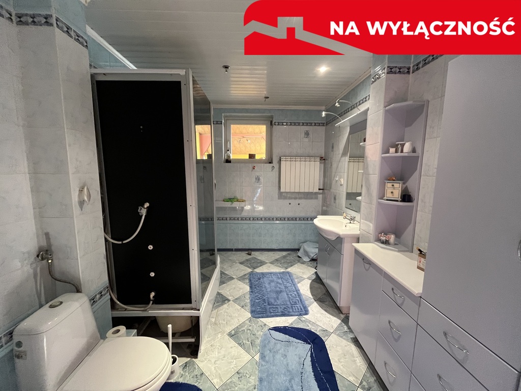 - dwa piętra górne stanowią pomieszczenia mieszkalne. Pierwsze piętro to łazienka o pow. 9 m2, kuchnia o pow. 13,5 m2 przy której jest jadalnia o pow. 14,5 m2 (opcjonalnie można przeznaczyć na pokój), trzy pokoje o pow. 30 m2, 12 m2, 21,5 m2. oraz taras o pow. 33,5 m2 zabudowany murowanymi ścianami. Drugie piętro domu to korytarz o pow. 10 m2, pomieszczenie do adaptacji na kuchnie o pow. 10 m2, trzy pokoje o pow. 29 m2, 29 m2, 19 m2. łazienka o pow. 7,5 m2. Do części mieszkalnej prowadzi klatka schodowa na którą wchodzimy od środka z części handlowo-usługowej jak również od strony podwórka od tyłu budynku.
