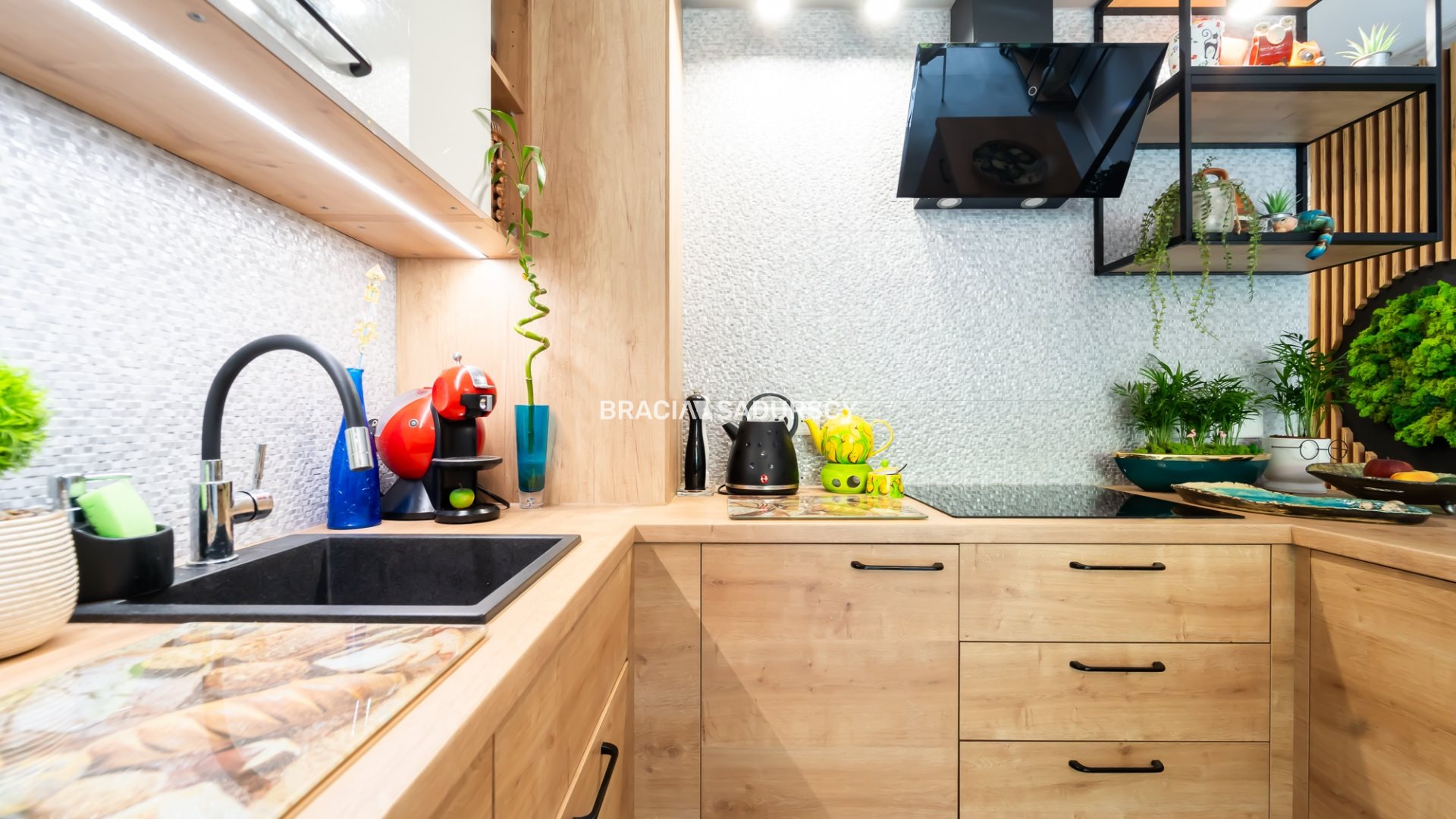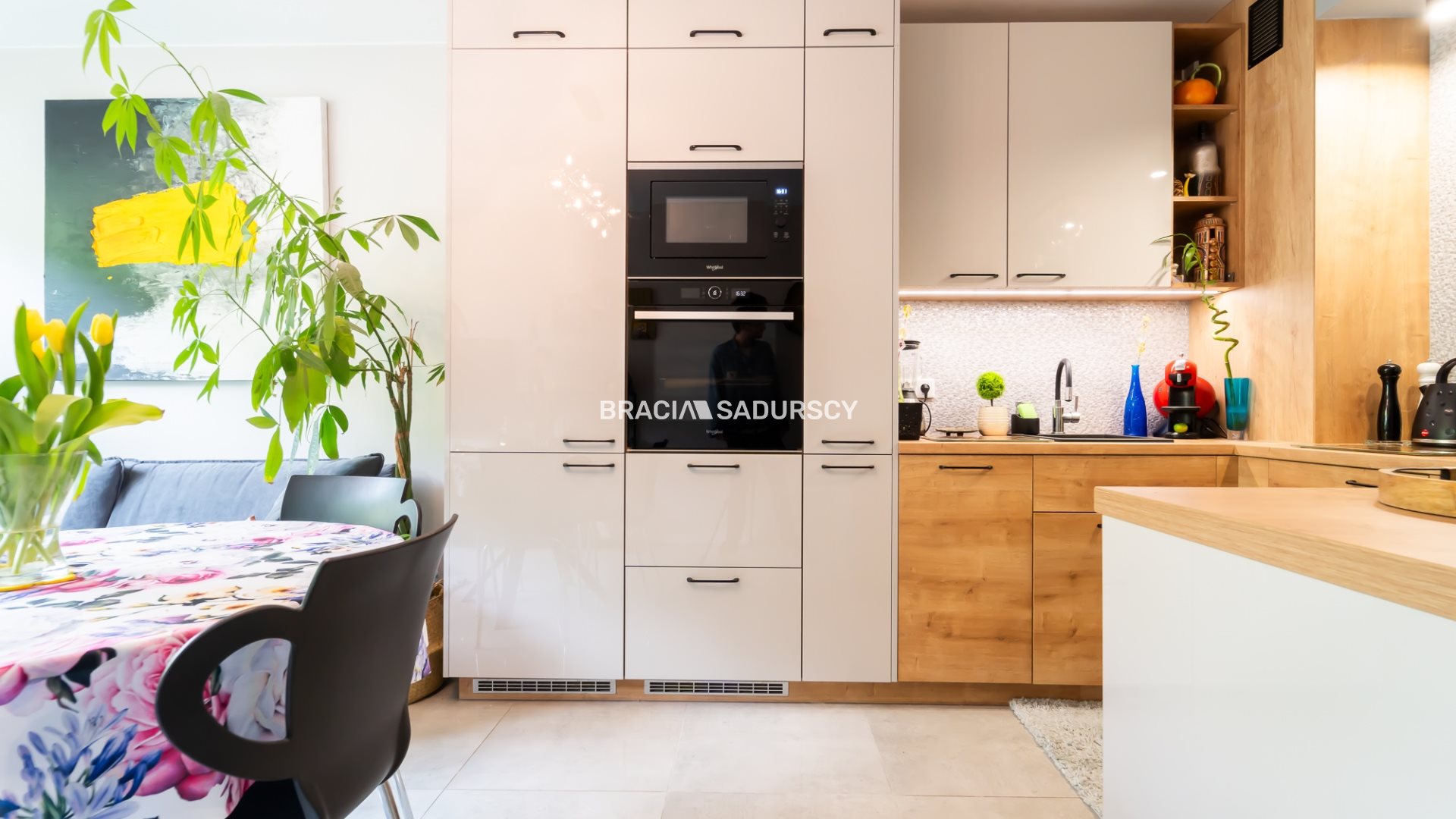 W kuchni także dbałość o każdy element, sprzęt wysokiej jakości marki Whirpool (płyta, piekarnik, mikrofalówka, zmywarka).