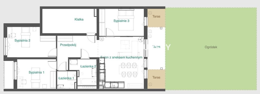 Nowa Huta, Mogiła, ul. Stare Wiślisko. Mieszkanie o pow. 80,0 m 2 , z 2-ma miejscami garażowymi, komórką lokatorską i ogródkiem o pow. 92 m 2 .