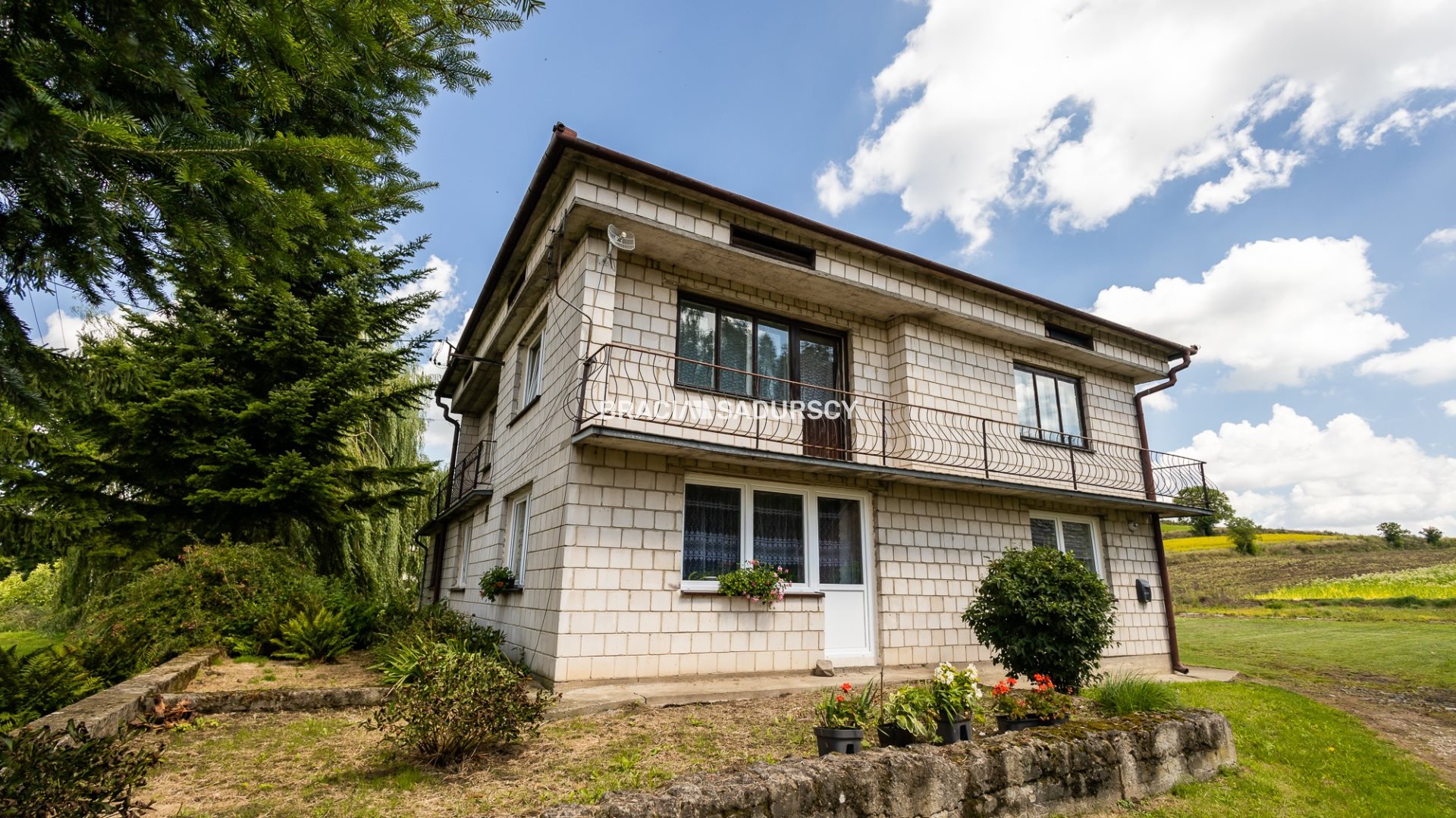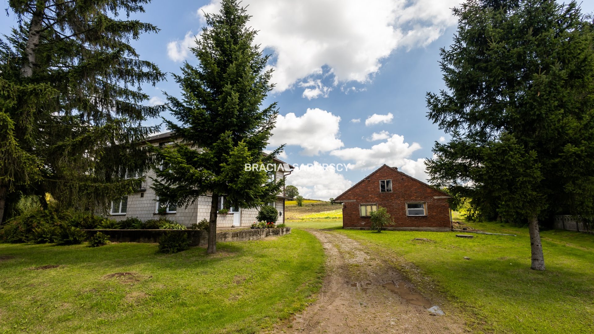 Dom wolnostojący, 2-kondygnacyjna z lat 90-tych XX w., o pow. całkowitej 222,79 m 2 , z garażem w bryle budynku oraz obok, stary dom z cegły o pow. ok. 110 m 2 , posadowiony na działce o pow. 0,46 ha, z bezpośrednim dostępem do drogi publicznej.