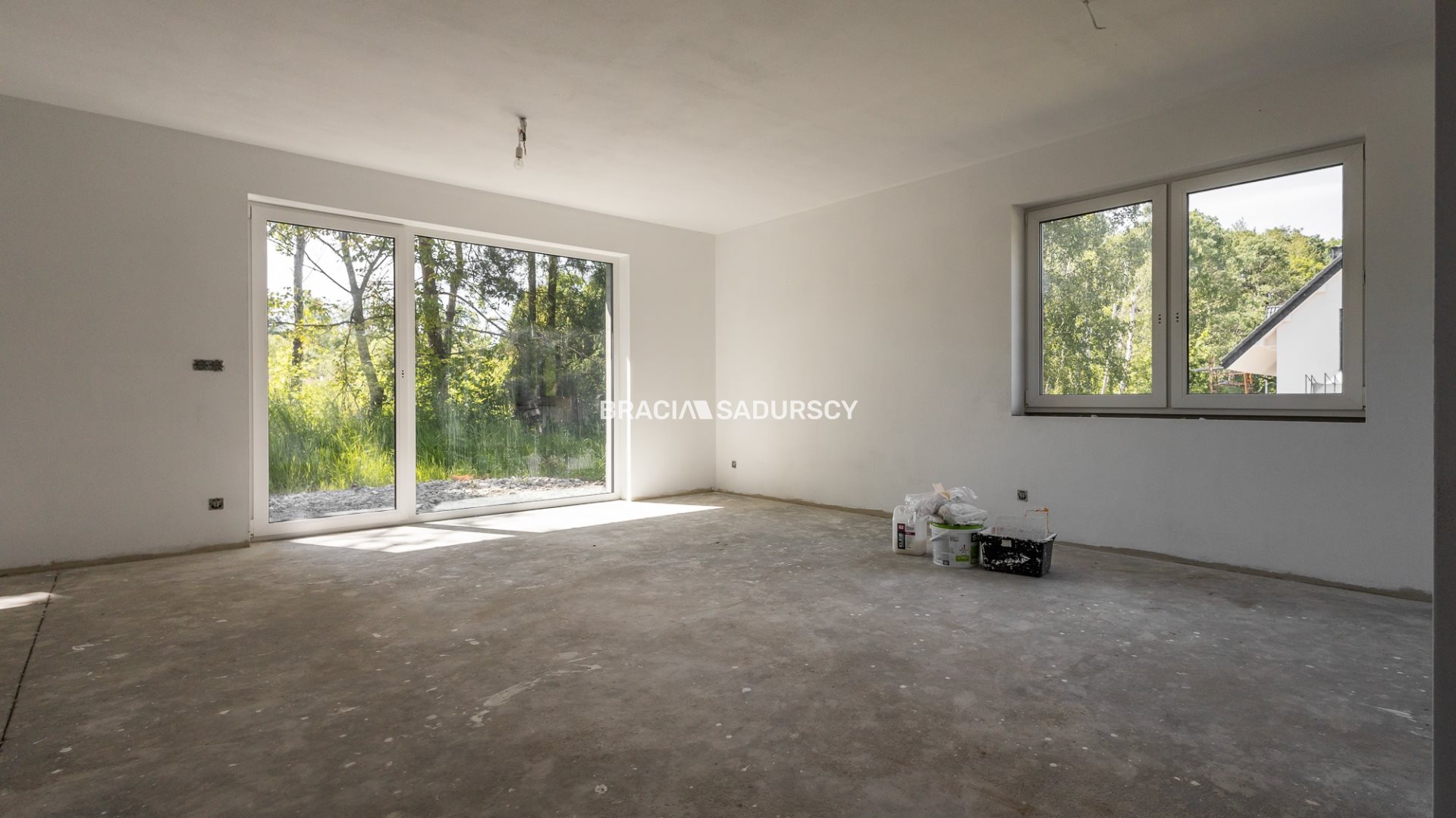 W bezpośrednim sąsiedztwie nowe domy jednorodzinne, łąka, las.