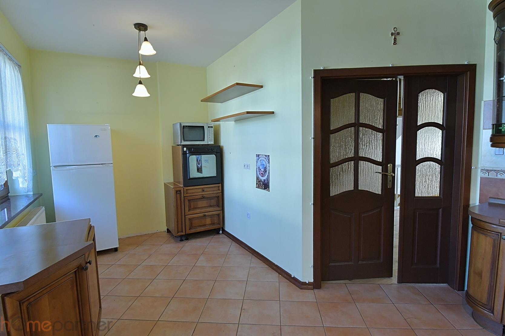The living room is equipped with a spacious corner sofa, a table with 7 chairs. The living room has space for a fireplace. Built-in wooden kitchen, equipped with Daewoo freestanding refrigerator-freezer, Smeg ceramic hob, Candy freestanding electric oven, Panasonic microwave, hood, Bosch 60 cm dishwasher. Three bathrooms - two equipped with bathtubs and one with a shower. Individual heating, double-function gas stove with storage tank , replaced 3 years ago .Wooden beech staircase, wooden beech floor in the living room, parquet in the other rooms. Granite window sills. Wooden window frames, door frames also wooden. On all terraces replaced board about 4 years ago. Underfloor heating in the kitchen and bathrooms.