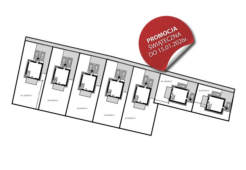 • Powierzchnia działki: od 310 m² do 550 m²