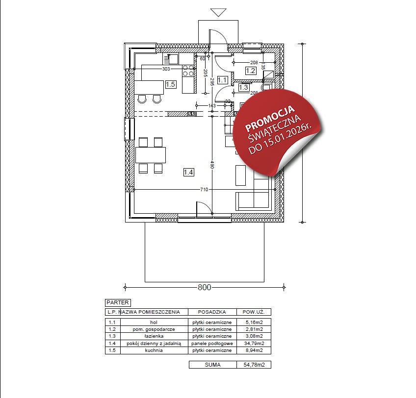 • technologia tradycyjna (POROTHERM 25 cm + ocieplenie 20 cm)
