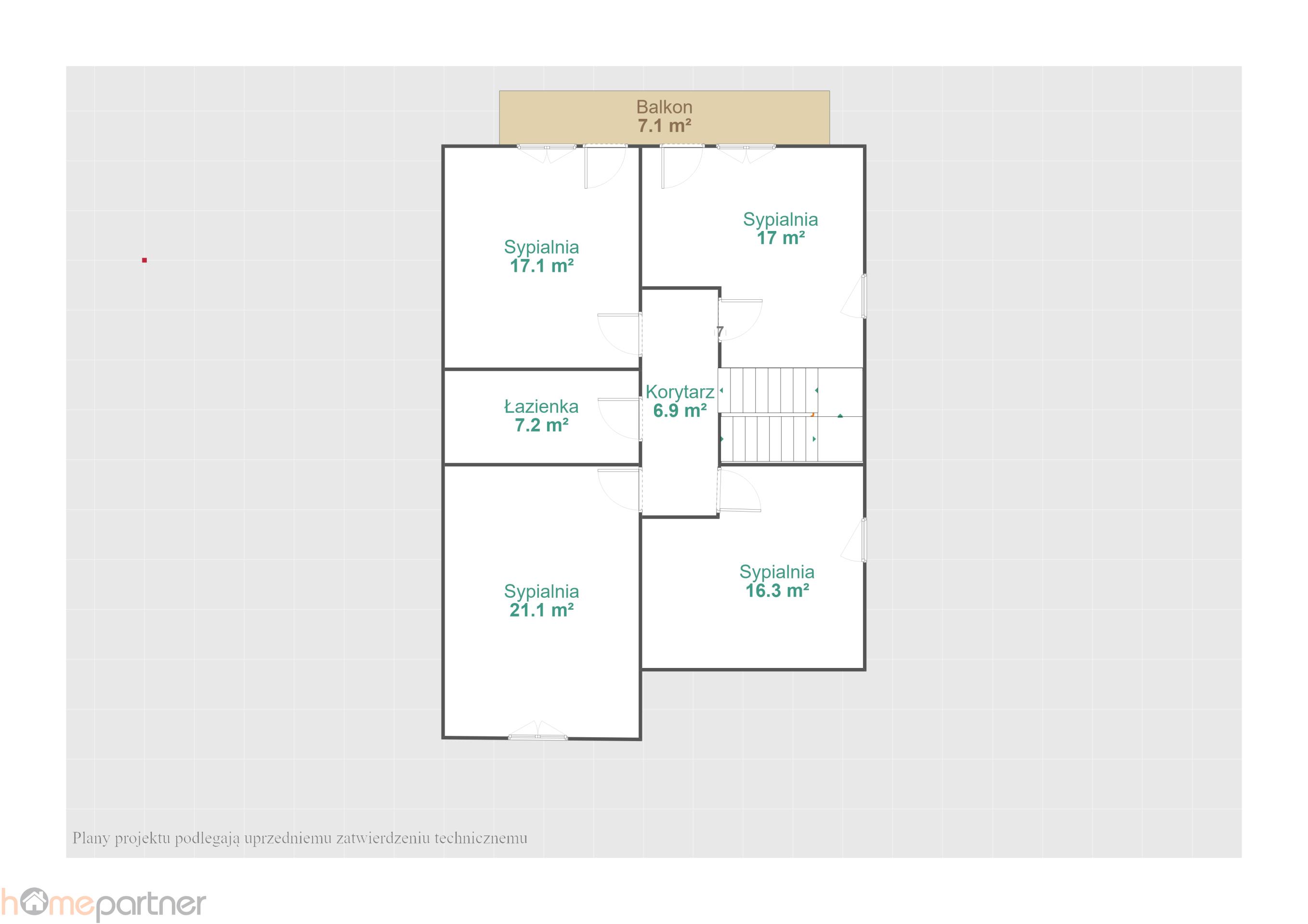 - 4 sypialnie z możliwością wydzielenia garderoby (brak skosów) - 17,67 m2, 21 m2, 16,53 m2, 17,25 m2)
