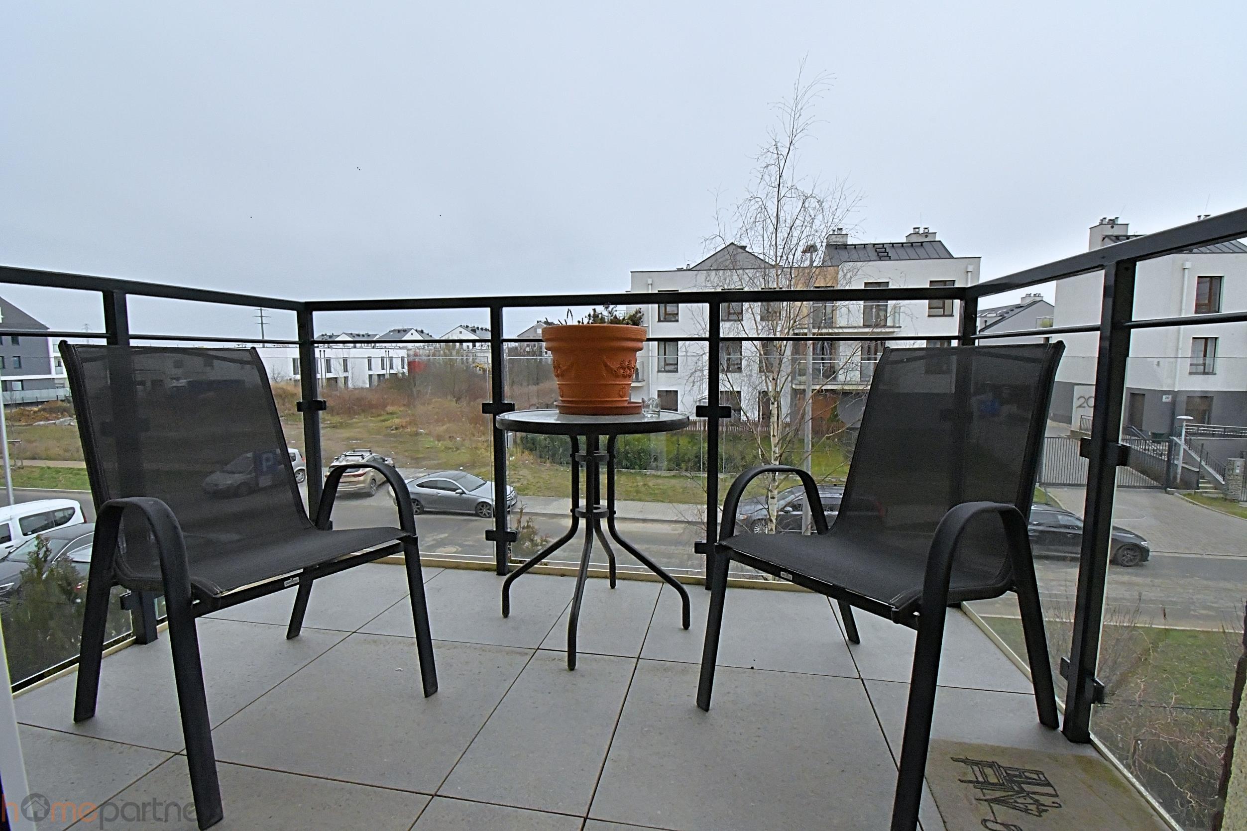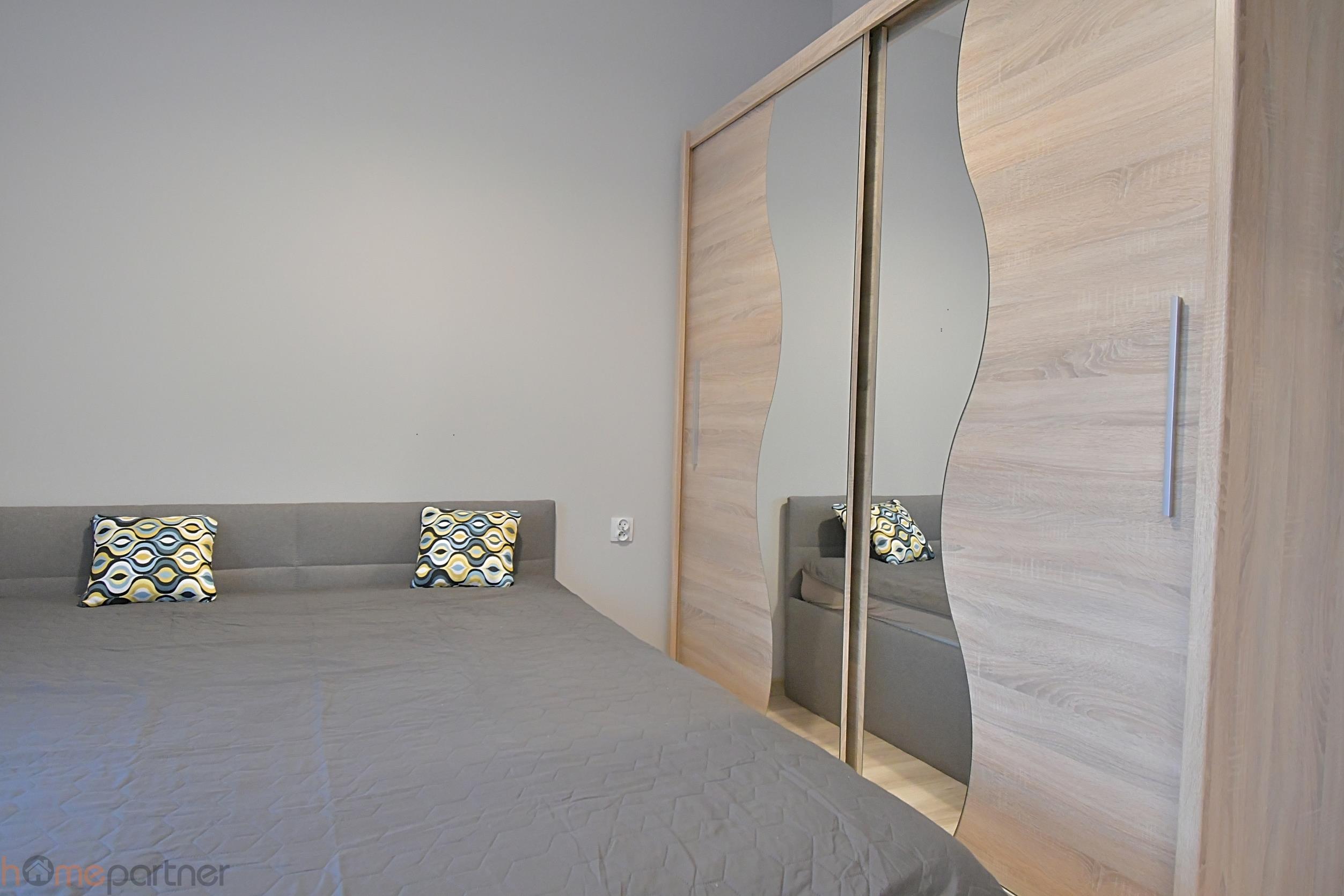W salonie rozkładany narożnik, regał, telewizor. Balkon ze stoliczkiem. W sypialni rozkładane łóżko, duża szafa. W przedpokoju również jest zamontowana wielka szafa. Na wyposażeniu żelazko i odkurzacz. Rolety dzień/noc we wszystkich oknach. Videodomofon