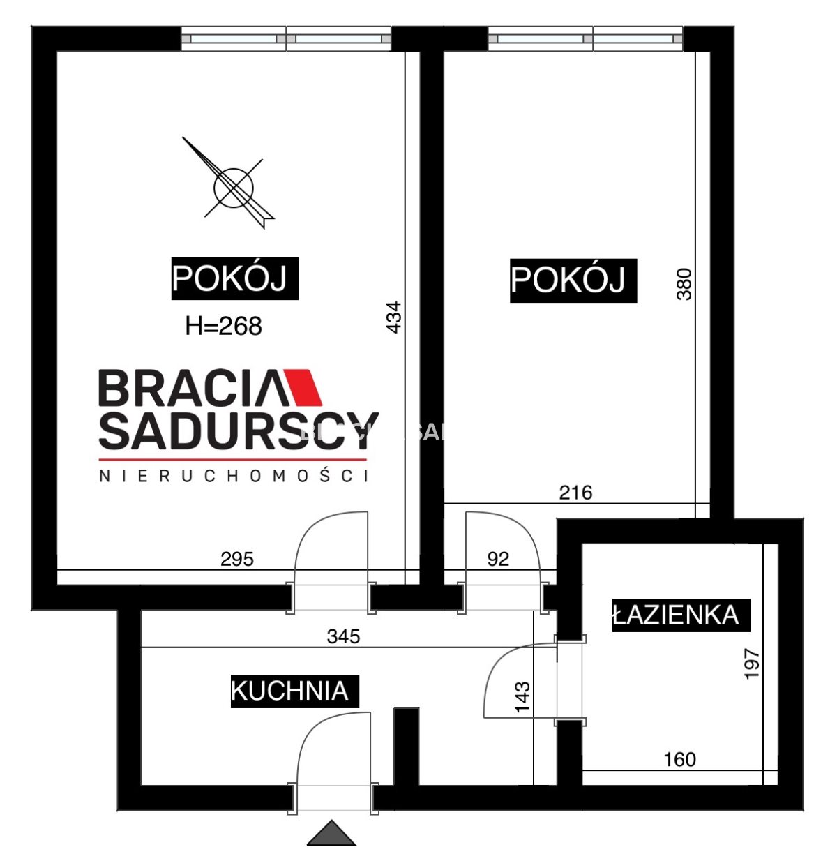Mieszkanie zostało przerobione do aktualnego rozkładu (2 niezależne pokoje), kuchnia zostało przeniesiona z mniejszego pokoju do przedpokoju.