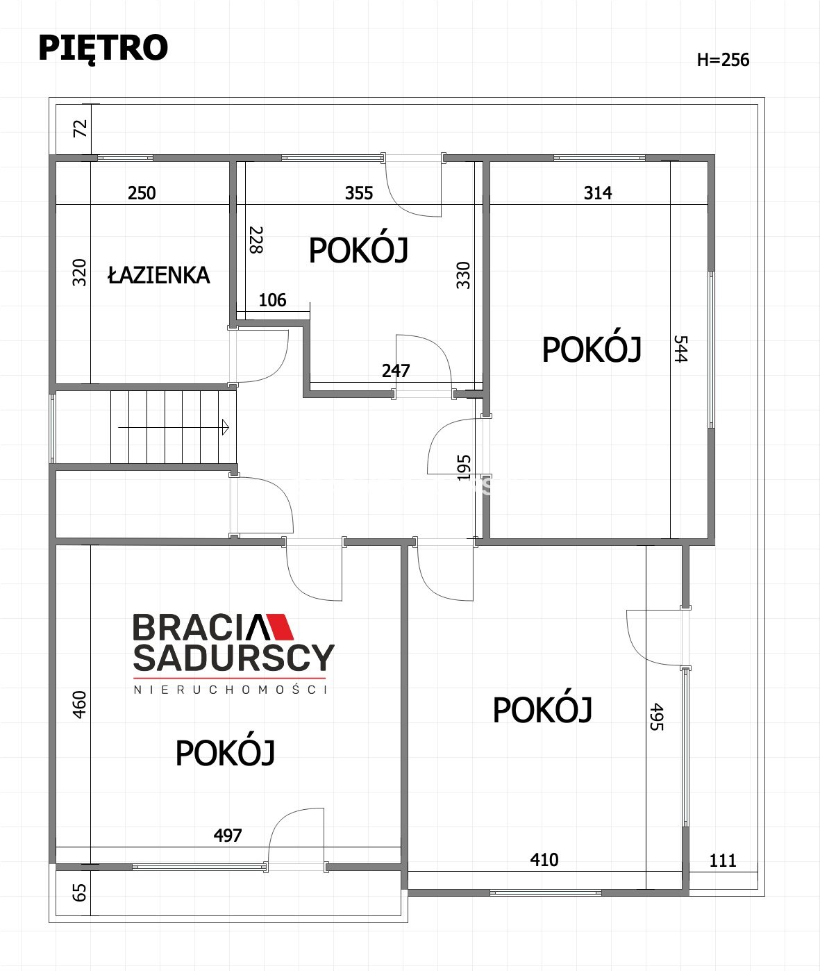 Na piętrze znajdują się 4 pokoje (22,85 m 2 , 17,08 m 2 , 20,3 m 2 , 10,57 m 2 ), łazienka (8,0 m 2 ) oraz przedpokój.
