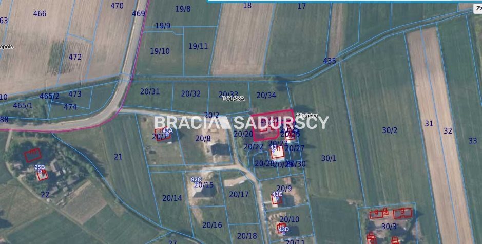 Oleśnica, okolice Dąbrowy Tarnowskiej. Działka budowlana o pow. 875 m 2 , z aktualną WZ-tka.