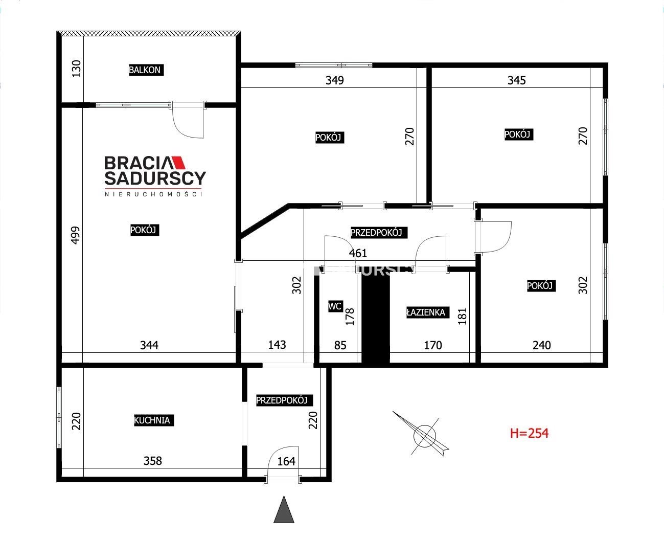 Ekspozycja okien na trzy strony świata: południe (dwa pokoje), wschód (duży pokój, sypialnia), północ (kuchnia).