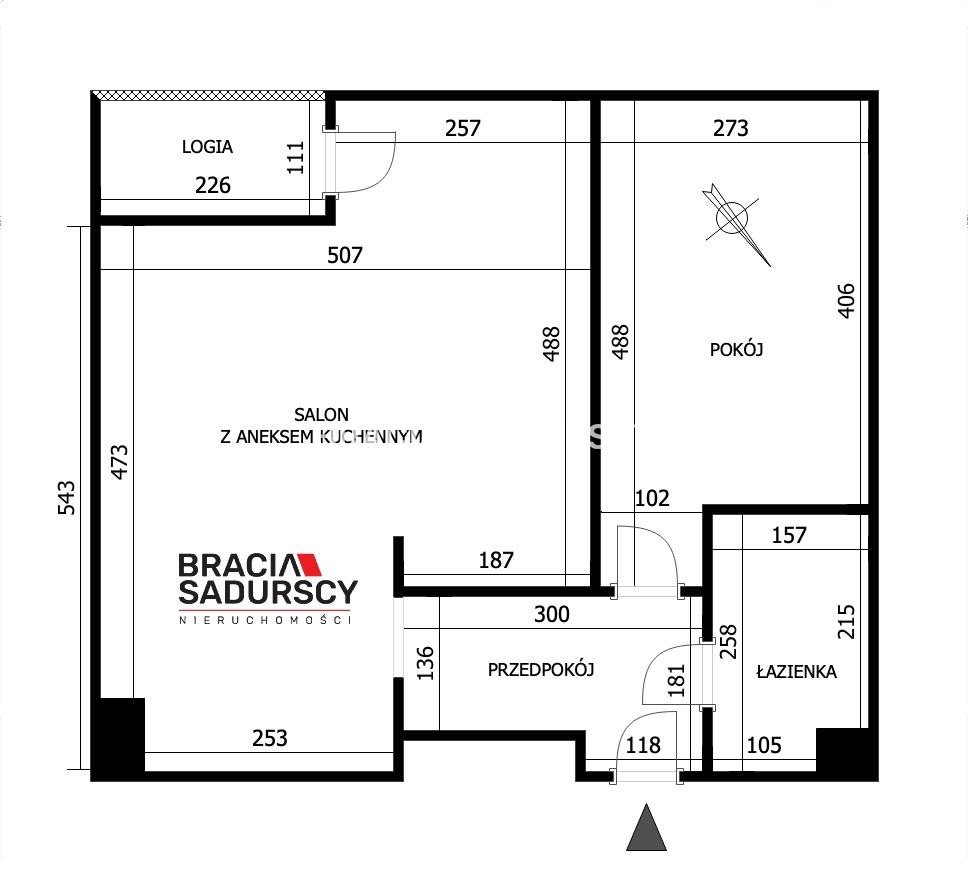 Mieszkanie dwupokojowe, z możliwością wyodrębnienia trzeciego pokoju.