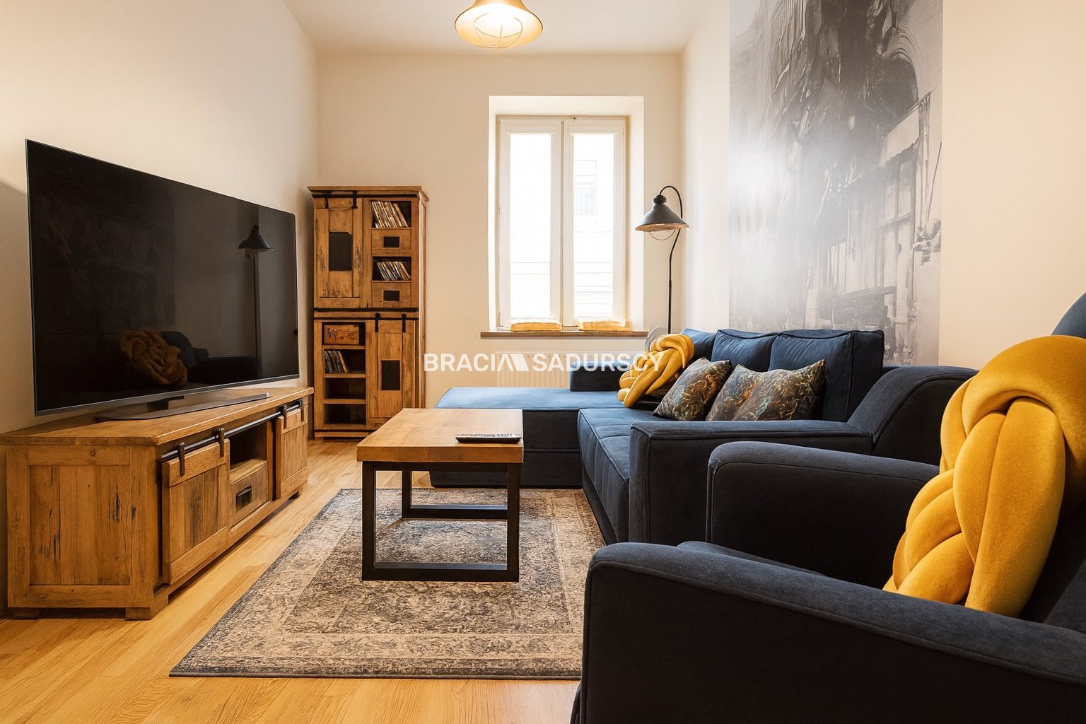 Mniejszy pokój wykończony w stylu prowansalskim, zakupiono do niego drewniane meble z drewna brzozowego; duży pokój wykończony modernistycznie, w stylu kolejowym (fototapeta, meble drewniane seria Railway- drewno mango). Mieszkanie wykończone i wyposażone jak na zdjęciach. Widok z obu pokoi jest na ul. Nową, szerokie parapety sprawiają że w ładne dni można relaksować się siedząc z kawą i książką, czując klimat Kazimierza.
