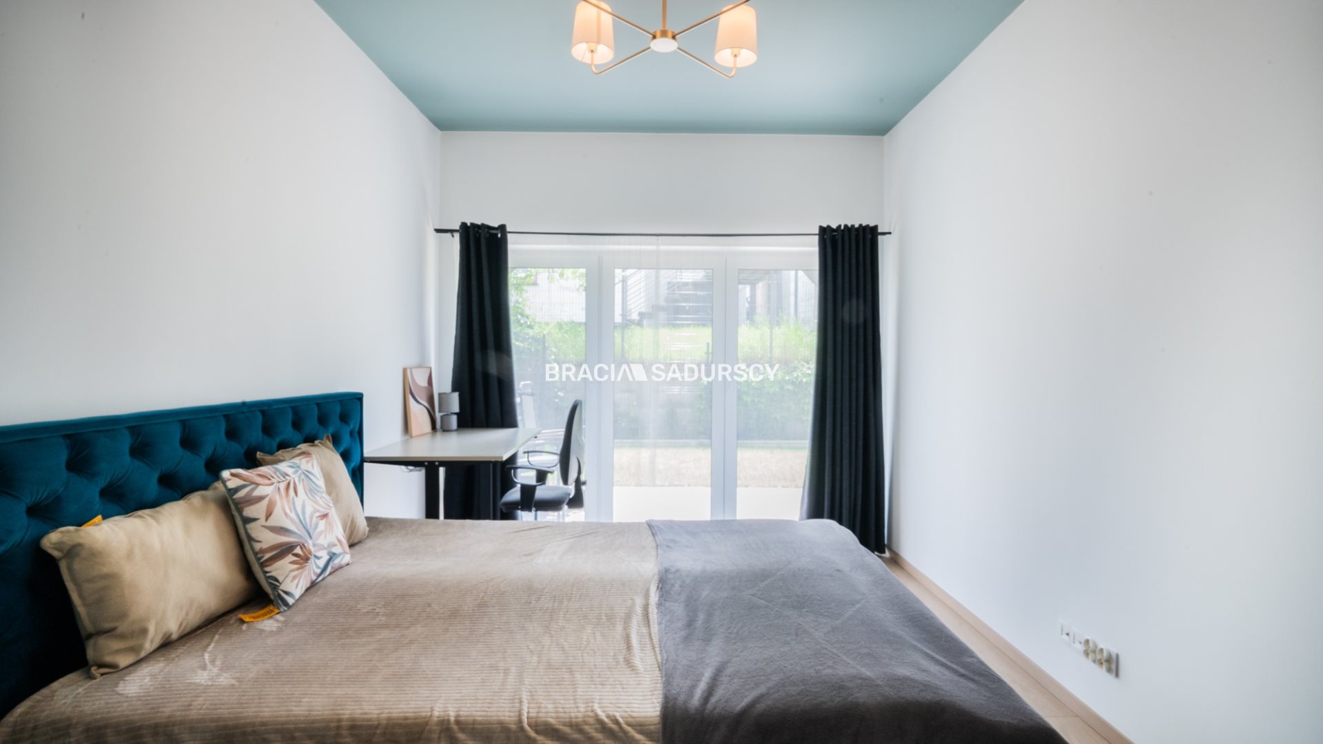 Z salonu i większej sypialni znajduje się wyjście na taras i ogródek o powierzchni ok. 43 m² - ekspozycja południowa, idealna na popołudniowy relaks w słońcu.