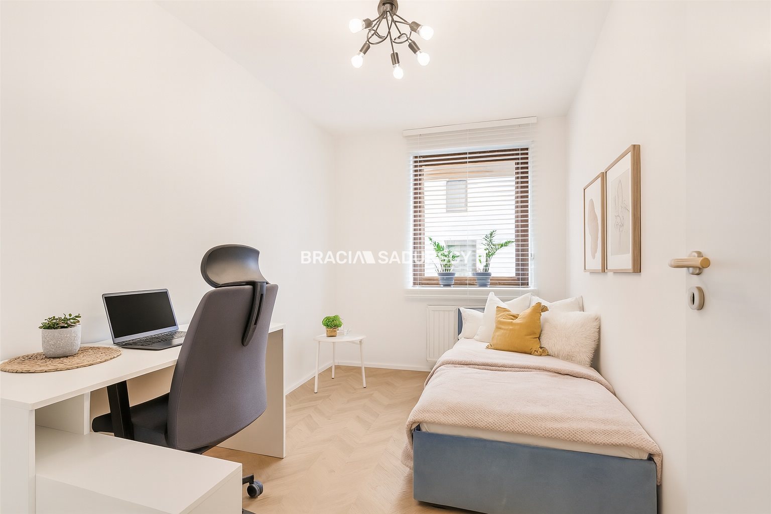 Mieszkanie po remoncie w 2025r, w czasie którego położono nowe podłogi (panele laminowane - jodełka francuska), rozprowadzono nowe oświetlenie (z lampami) oraz ukryte karnisze, wykończono ozdobną ścianę w przedpokoju, odmalowane ściany, wymieniono drzwi wewnętrzne, częściowo wykończono łazienkę (brakuje umywalki). W przedpokoju miejsce na szafę na odzież wierzchnią oraz drugą gospodarczą na pralkę i suszarkę.