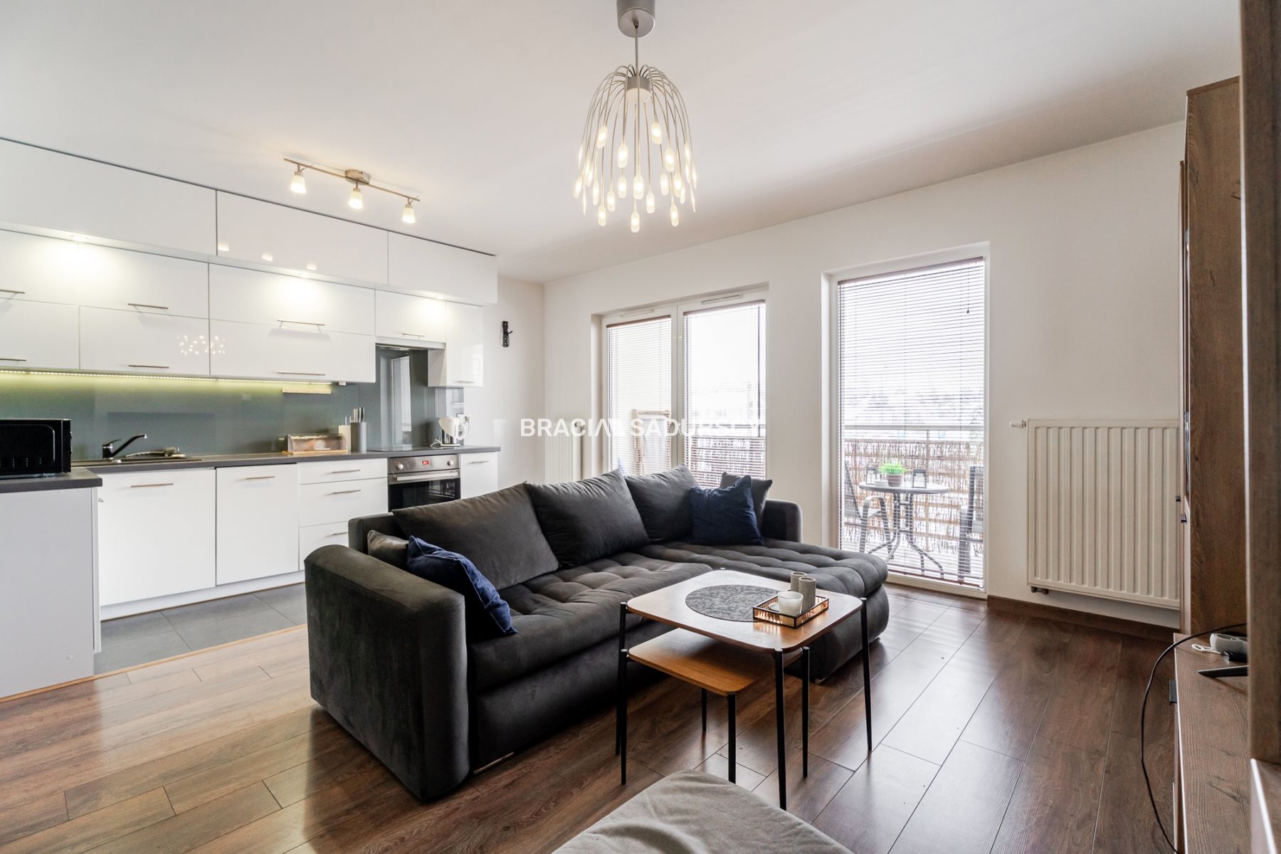 Budynek z 2013 roku, I piętro - mieszkanie o powierzchni 45,93 m 2 - 2 ustawne pokoje, jeden z nich stanowiący sypialnię ze swoim balkonem (mniejszym), salon z aneksem kuchennym z dużym balkonem, łazienka z prysznicem oraz hall. Pod blokiem ogólnodostępne miejsca parkingowe dla mieszkańców - wjazd za bramą.