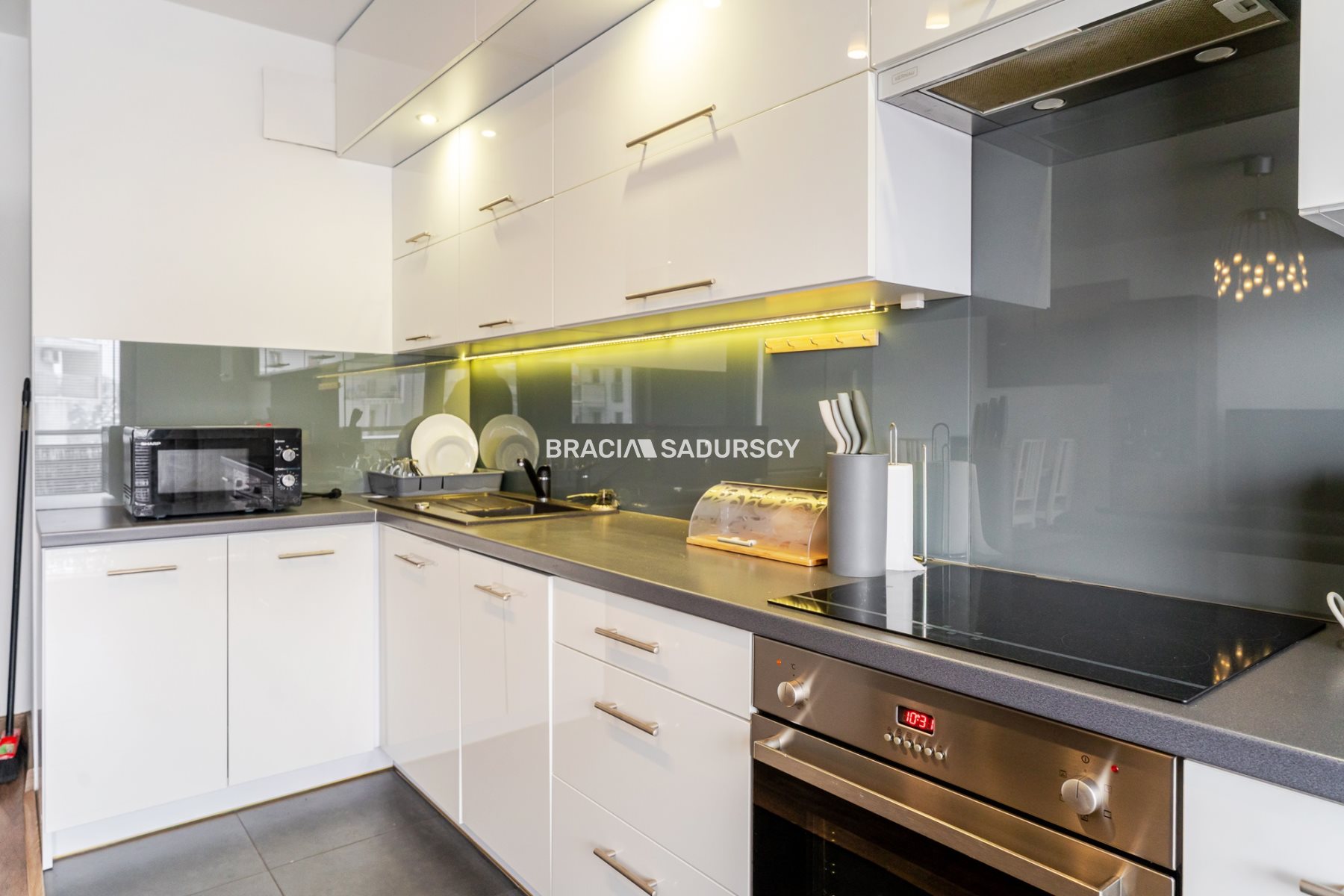 W kuchni płyta indukcyjna, piekarnik oraz zmywarka. Dużo obszaru roboczego dla ceniących i lubiących gotowanie w domu.