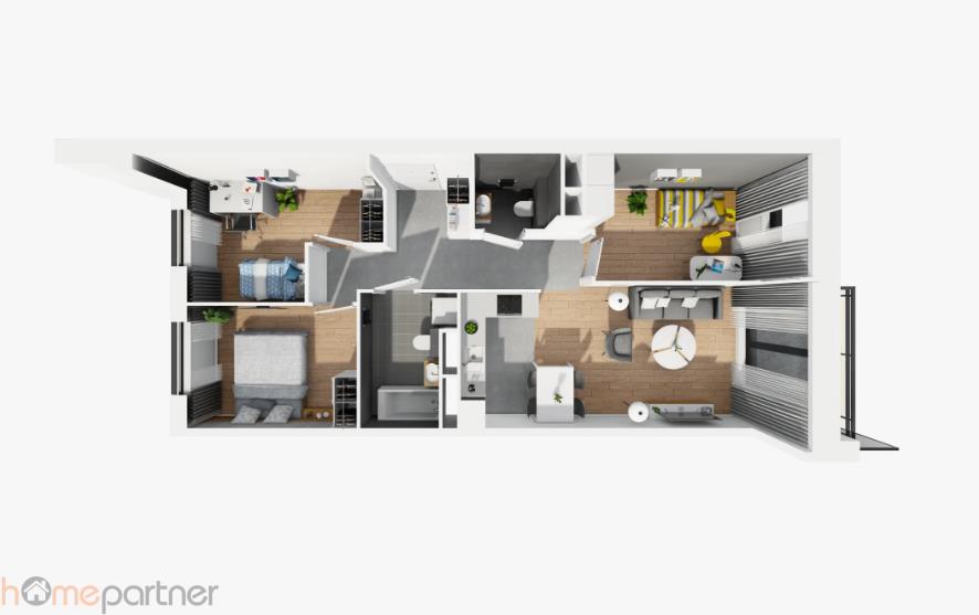 Każde mieszkanie ma taras, balkon lub loggię. Dodatkowo, możesz wykupić komórkę lokatorską i miejsce postojowe naziemne lub w podziemnym garażu.