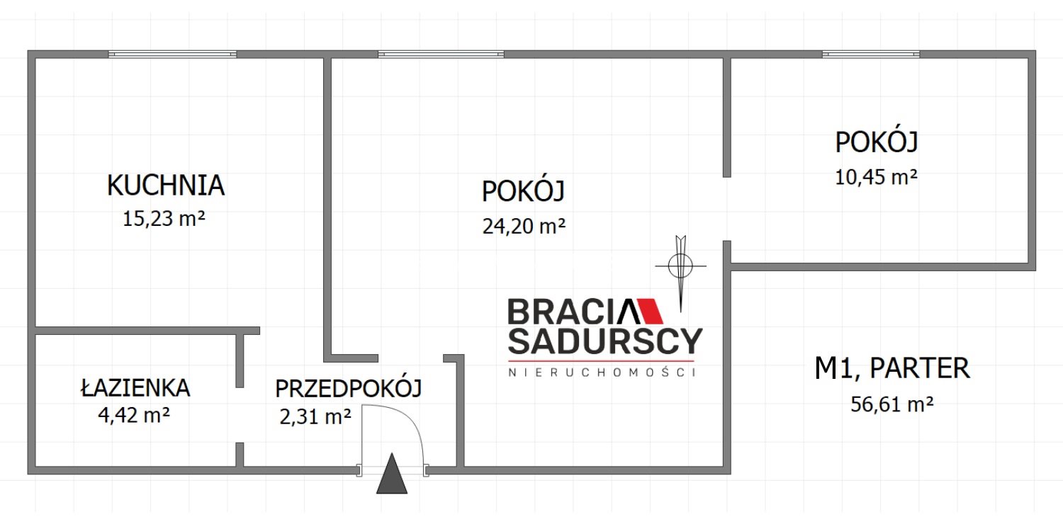 Mieszkanie o pow. 56,61 m 2 , na wysokim parterze, składa się z: