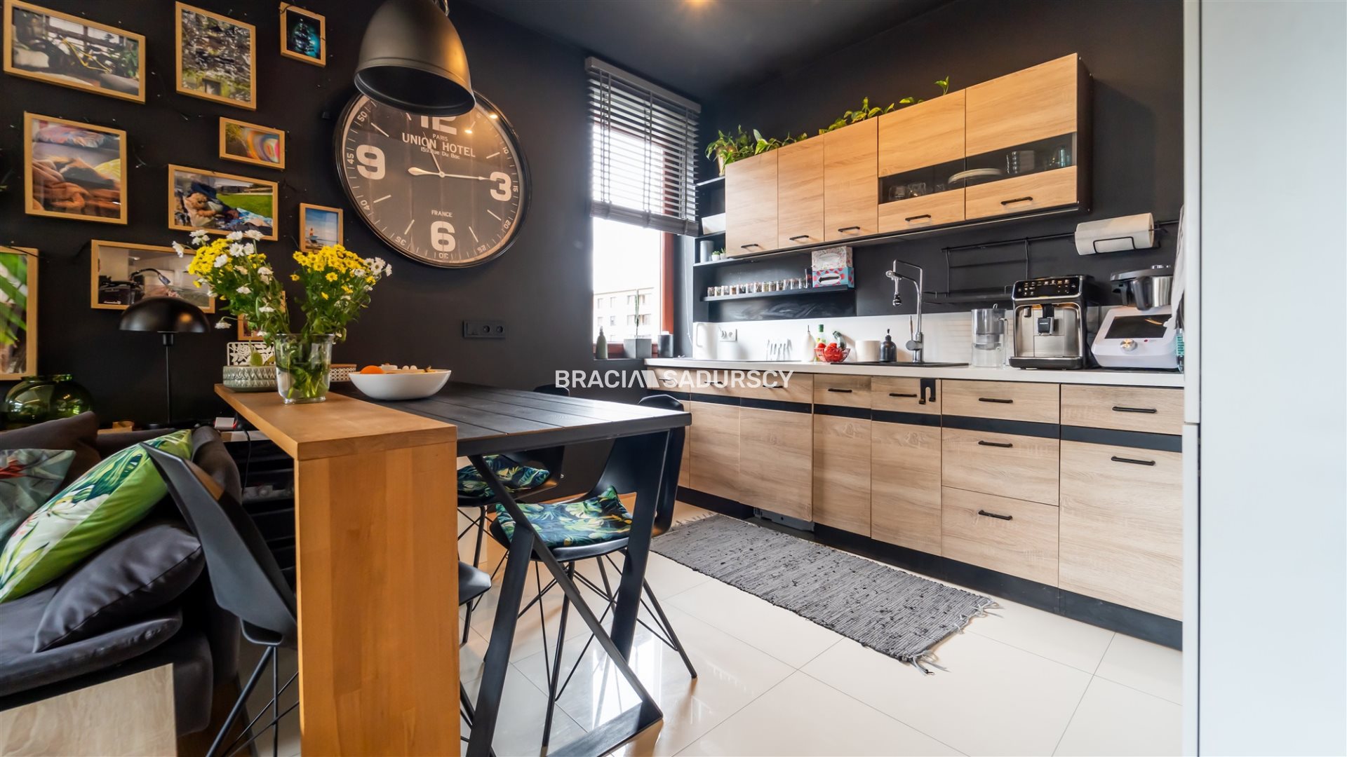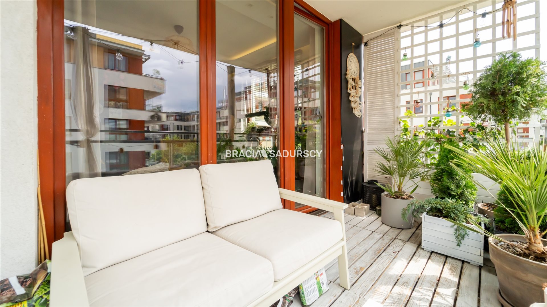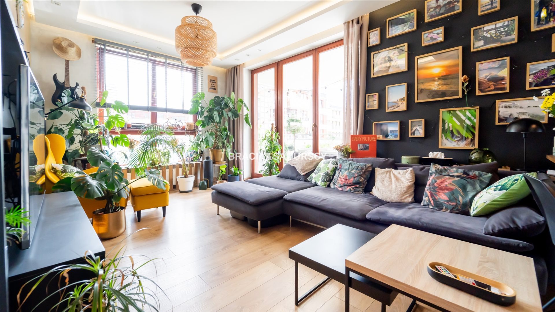 Mieszkanie wykończone materiałami wysokiej jakości, podwieszane sufity, oświetlenie LED. Na wyposażeniu sprzęt AGD (piekarnik, lodówka, kuchenka elektryczna, zmywarka, pralka). W mieszkaniu dużo szaf/przestrzeni do przechowywania. Ekspozycja okien płd-wsch.