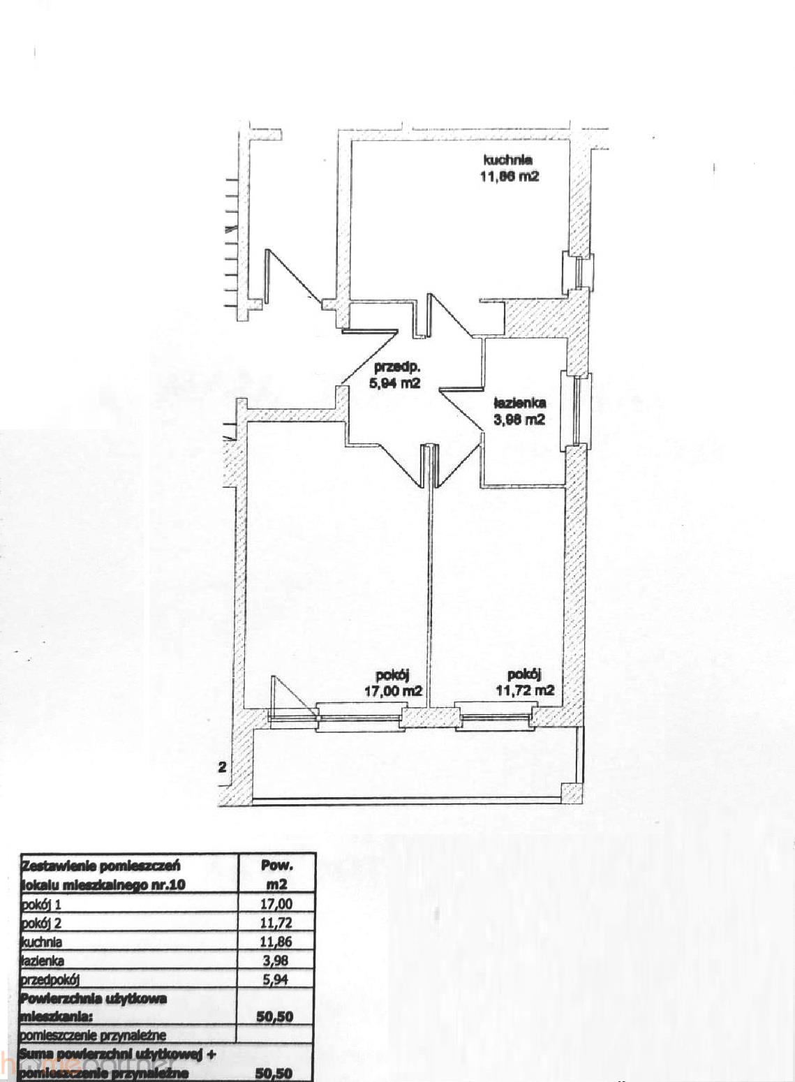 Powierzchnia użytkowa 50,50 m2, pełny rozkład.