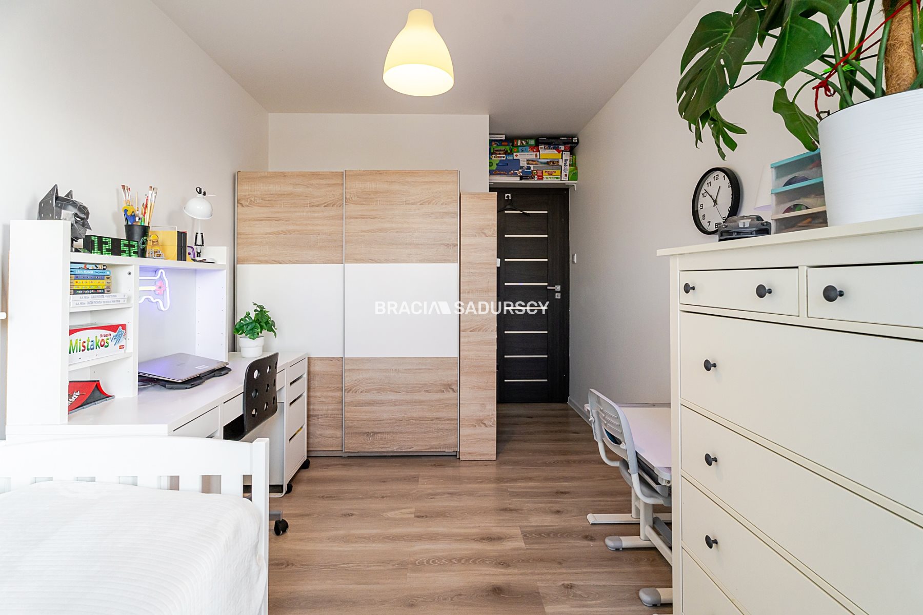 - sypialnia (ok. 11,5m2) - obecnie zaaranżowana jako gustowny pokój dziecięcy, o wygodnym i przemyślanym układzie, pozwalającym w przyszłości łatwo zmienić funkcję tego pomieszczenia. Z sypialni prowadzi wyjście na balkon (niecałe 4m2)