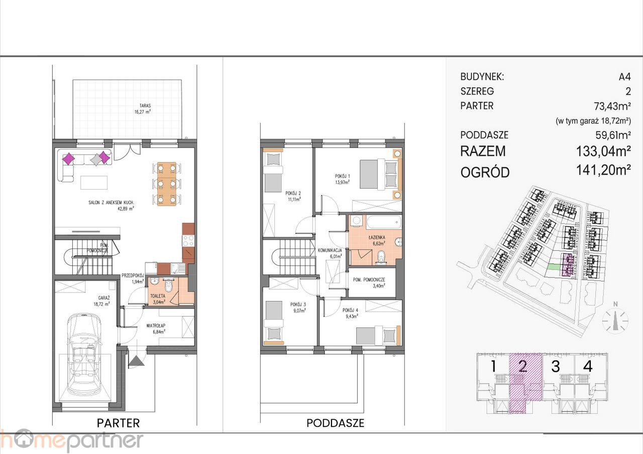 Parter: 73,43 m (w tym garaż 18,72 m)