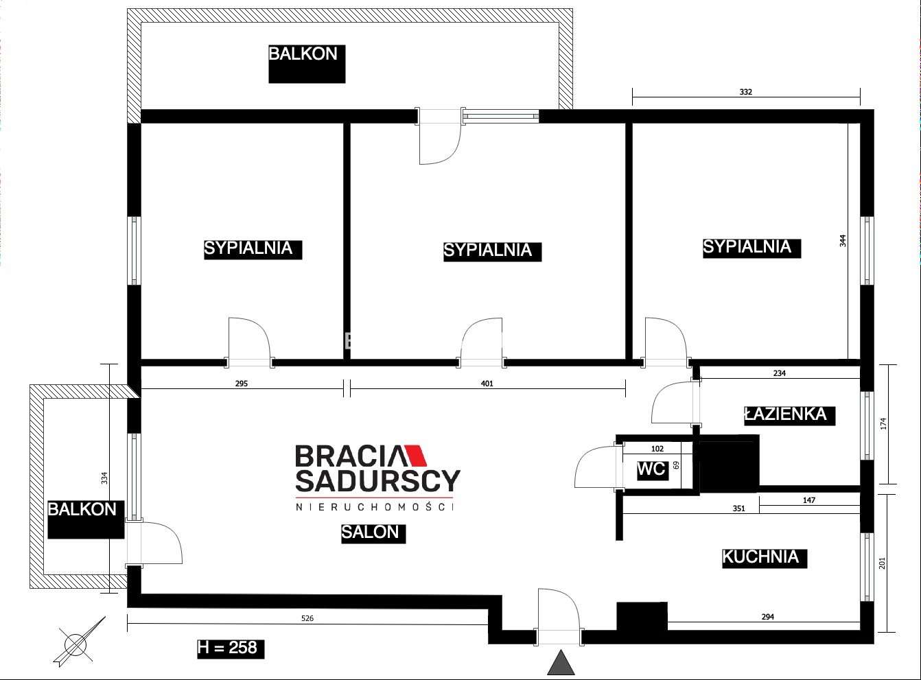 Funkcjonalny układ pomieszczeń - maksymalne wykorzystanie przestrzeni z trzema oddzielnymi sypialniami,