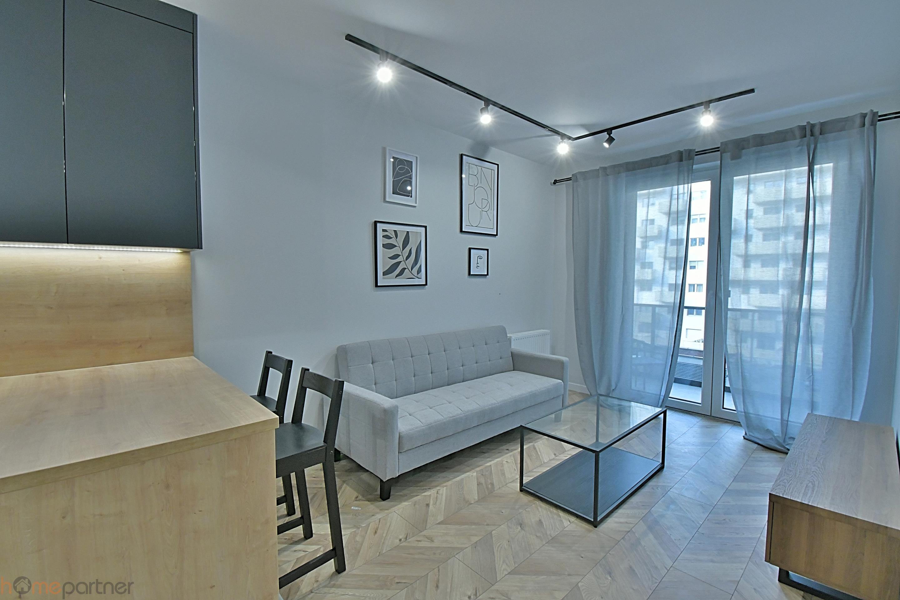 Mieszkanie jest umeblowane i nowocześnie zaaranżowane, wykończone materiałami wysokiej klasy. Kuchnia w zabudowie wyposażona w lodówko-zamrażarkę, płytę indukcyjną, piekarnik, okap, zmywarkę. Łazienka z wanną, pralka na wyposażeniu. W sypialni łóżko małżeńskie i duża szafa w zabudowie. Salon kompletnie wyposażony: sofa rozkładana z pojemnikiem na pościel, ława, meblościanka. Wszystkie sprzęty i wyposażenie w bardzo dobrym stanie.