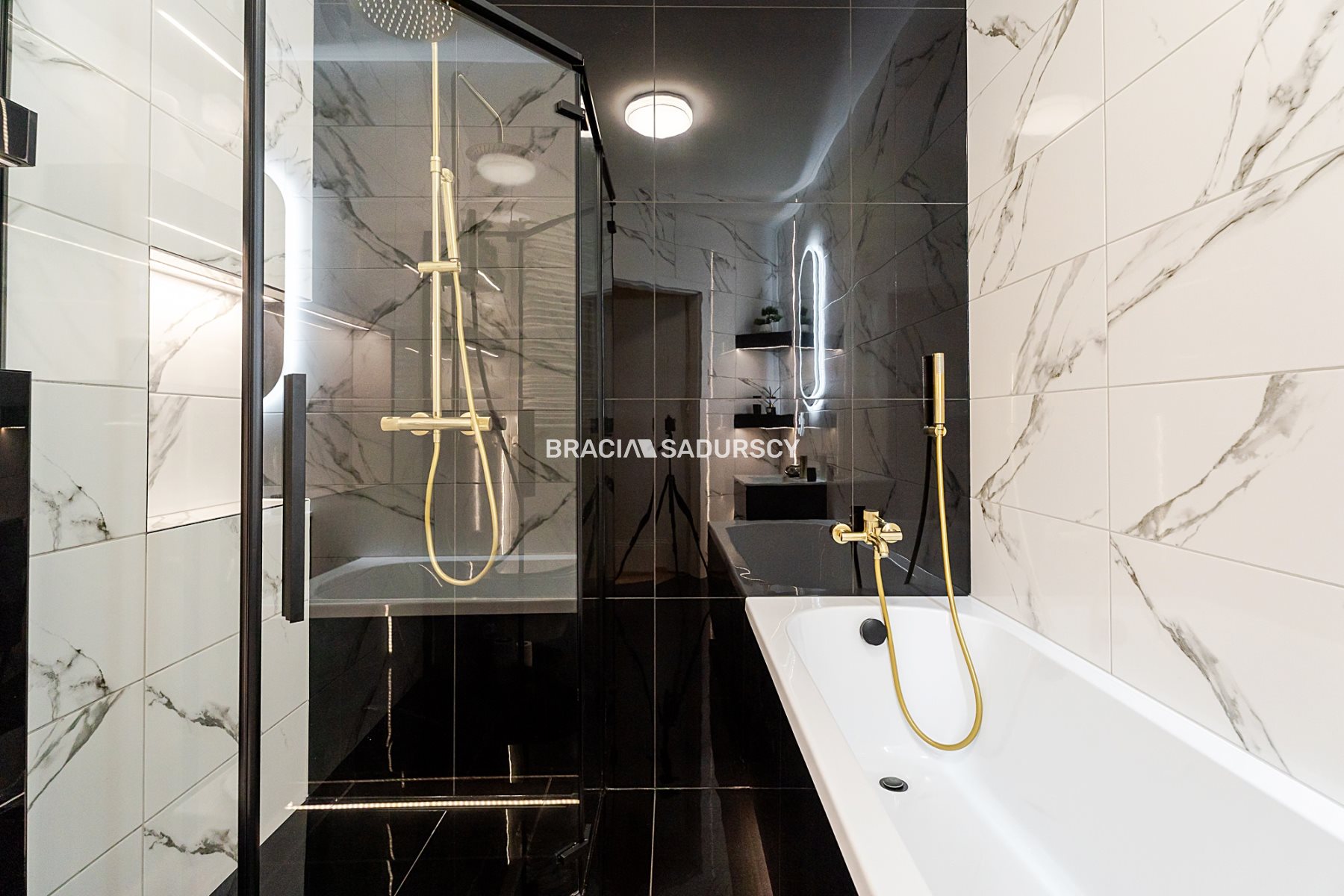 duża, komfortowa łazienka wyposażona zarówno w wannę, jak i kabinę prysznicową,