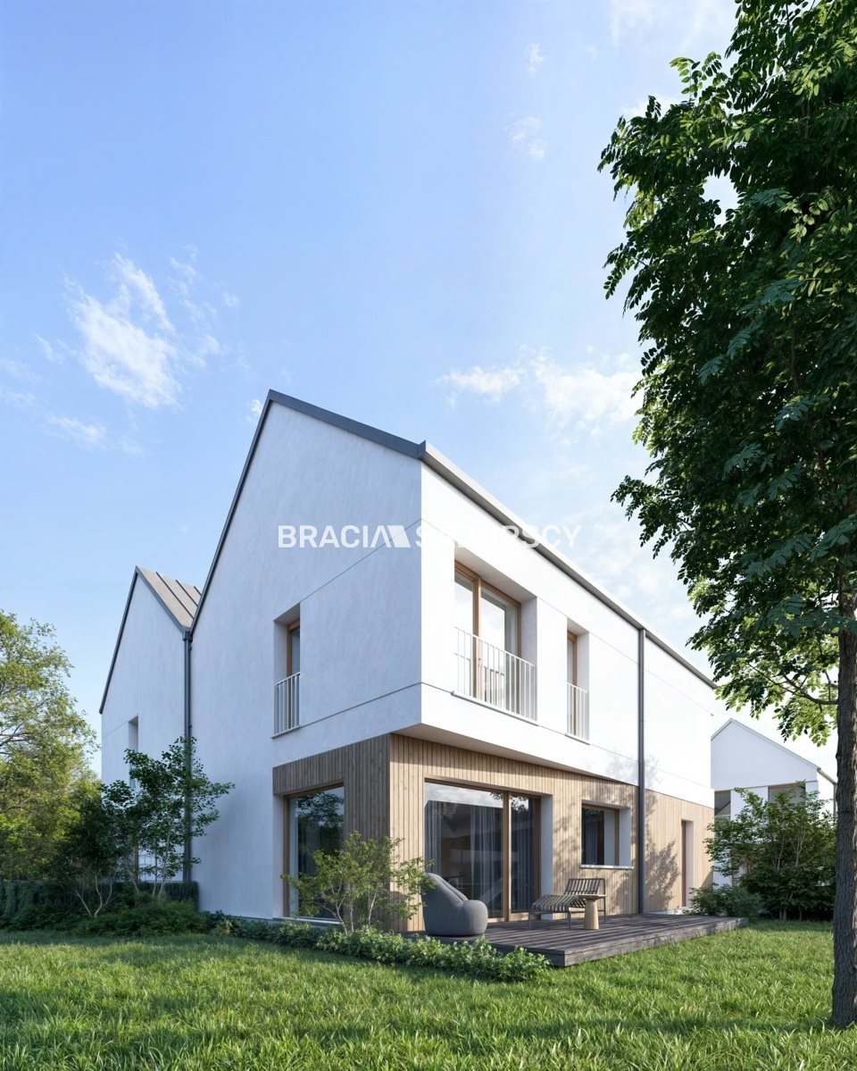 Domy o powierzchni użytkowej 117,54 m² + poddasze koło 40 m2 ( pow. całkowita 157,54 m²) położone są na działce o powierzchni ok . 5 arów , oferując przestronną przestrzeń na wspólne spędzanie czasu na świeżym powietrzu. Przy każdym domu będzie również nowoczesna wiata na 2 samochody .